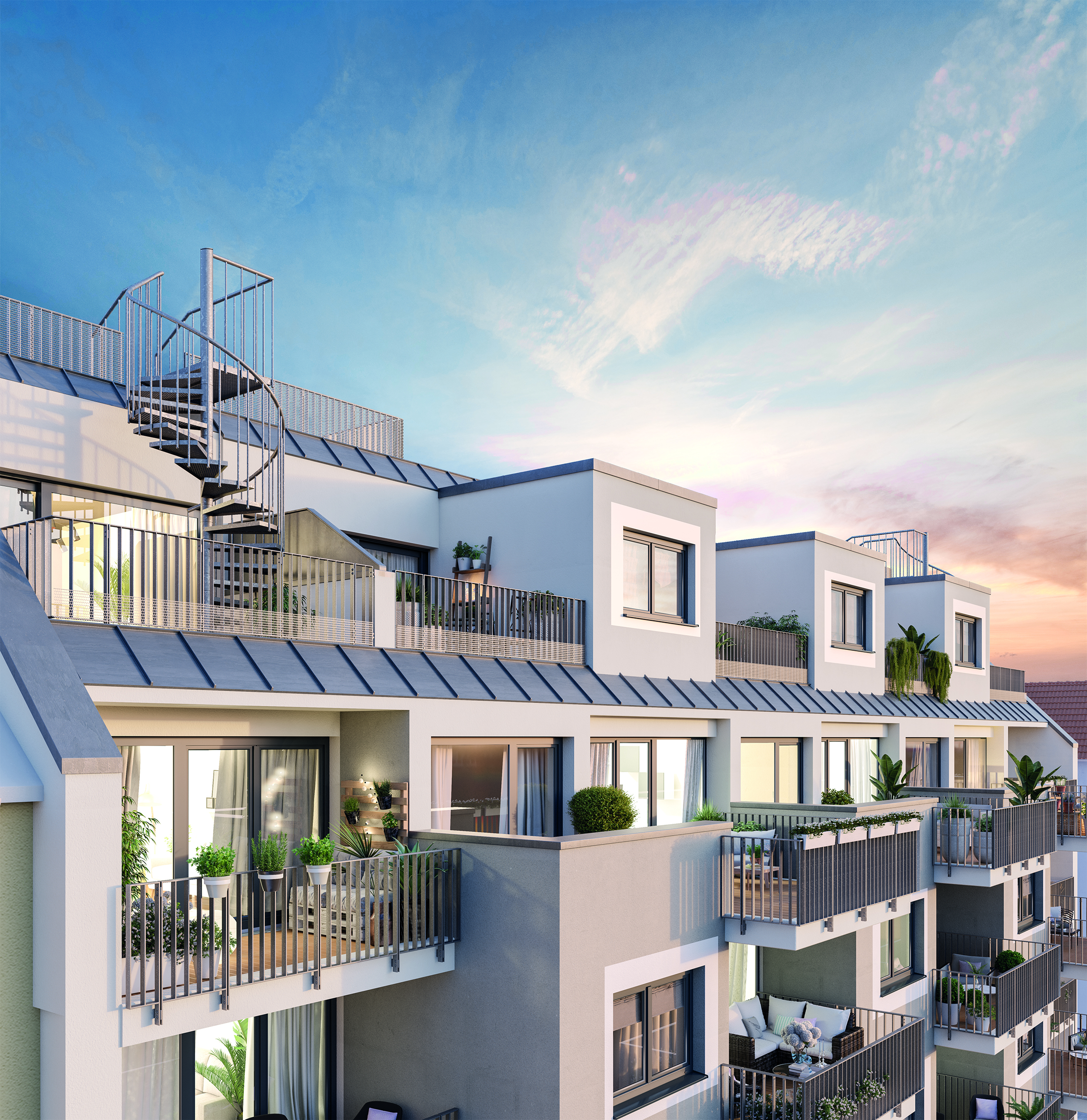 Neben der gefragten Lage verfügt Amalia 54 über architektonische Trends wie Maisonettes und exklusive Rooftop-Terrassen. Die hochwertigen Ausstattungslinien namhafter Hersteller runden das Gesamtkonzept ab.