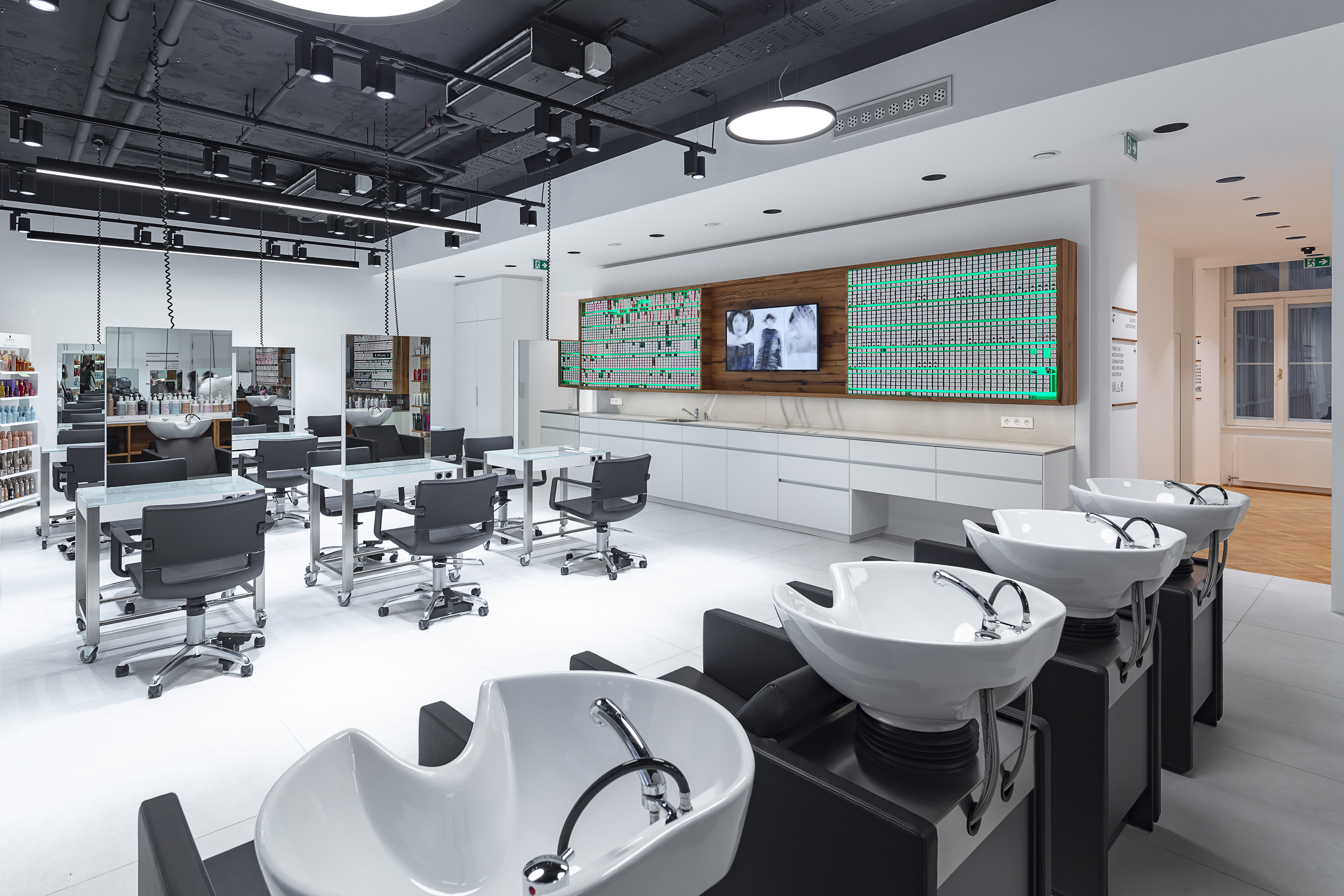 , berichtet Alexander Höfferer (Leiter Professional Partner Service Henkel Beauty Care Professional) stolz. „Dieses nutzen wir zur Produktion unserer eigenen Schulungs- und Marketingmaterialien, bieten es aber auch unseren Salonkunden zur Nutzung an“, so Höfferer weiter. Und auch sonst ist die ASK Academy Wien, geplant und umgesetzt vom Wiener Architektenteam M&G, auf dem modernsten Stand der Technik, was sie – zusätzlich zur optischen Attraktivität und zu ihrer zentralen Innenstadtlage – als Eventlocation für externe Firmen ebenfalls interessant macht.