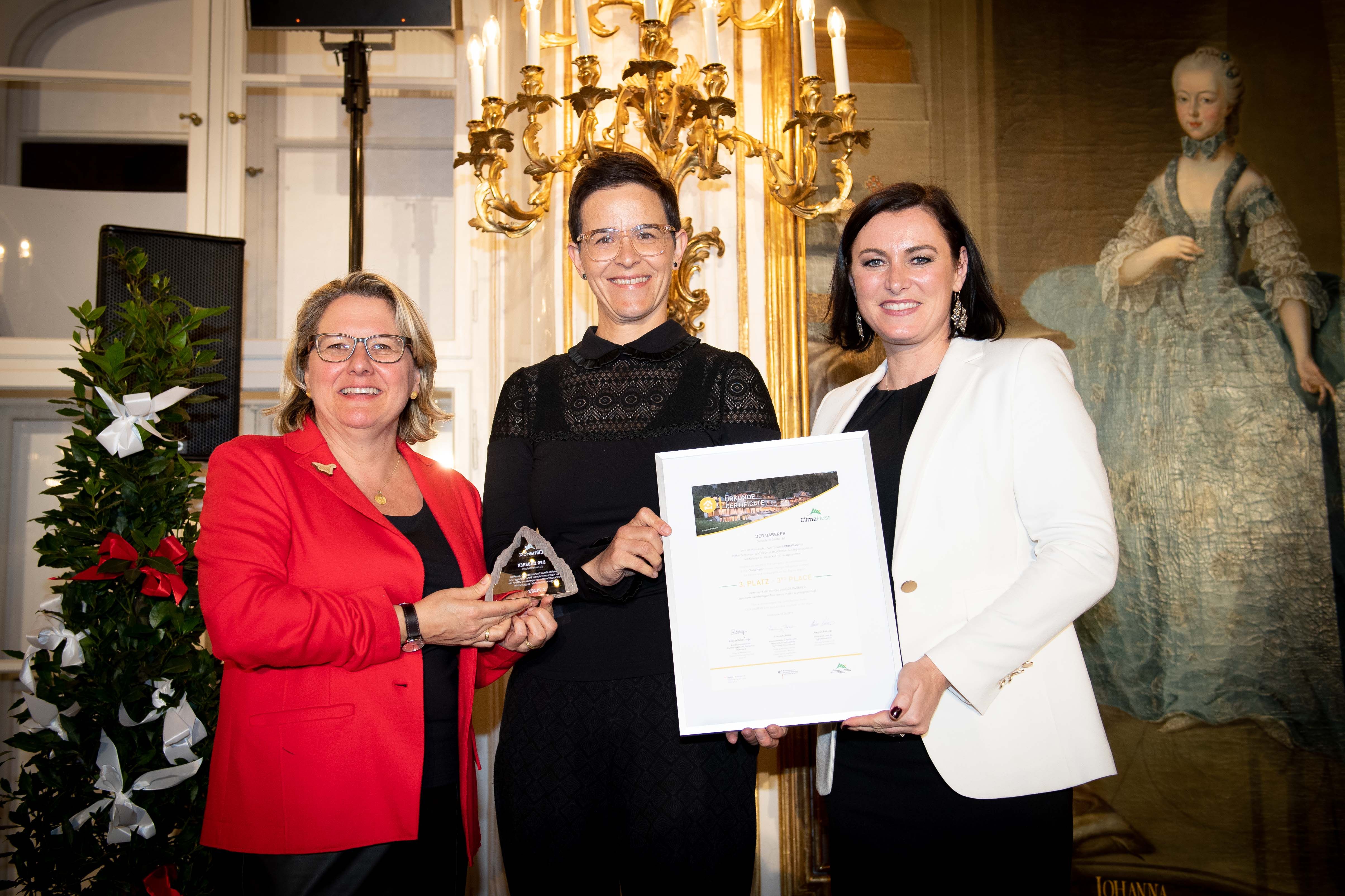 "Das Biohotel 'der daberer' zeigt beispielhaft, wie kreativer und innovativer Klimaschutz im Tourismus funktionieren kann. Deshalb wurde es auch von der Expertenjury als einer der Sieger des 'ClimaHost'-Wettbewerbs ausgezeichnet", betont Elisabeth Köstinger, Österreichs Bundesministerin für Nachhaltigkeit und Tourismus. Köstinger war es, die zusammen mit ihrer deutschen Kollegin, Bundesumweltministerin Svenja Schulze, Anfang April 2019, im Rahmen der XV. Alpenkonferenz in Innsbruck, die ClimaHost-Preise übergab.