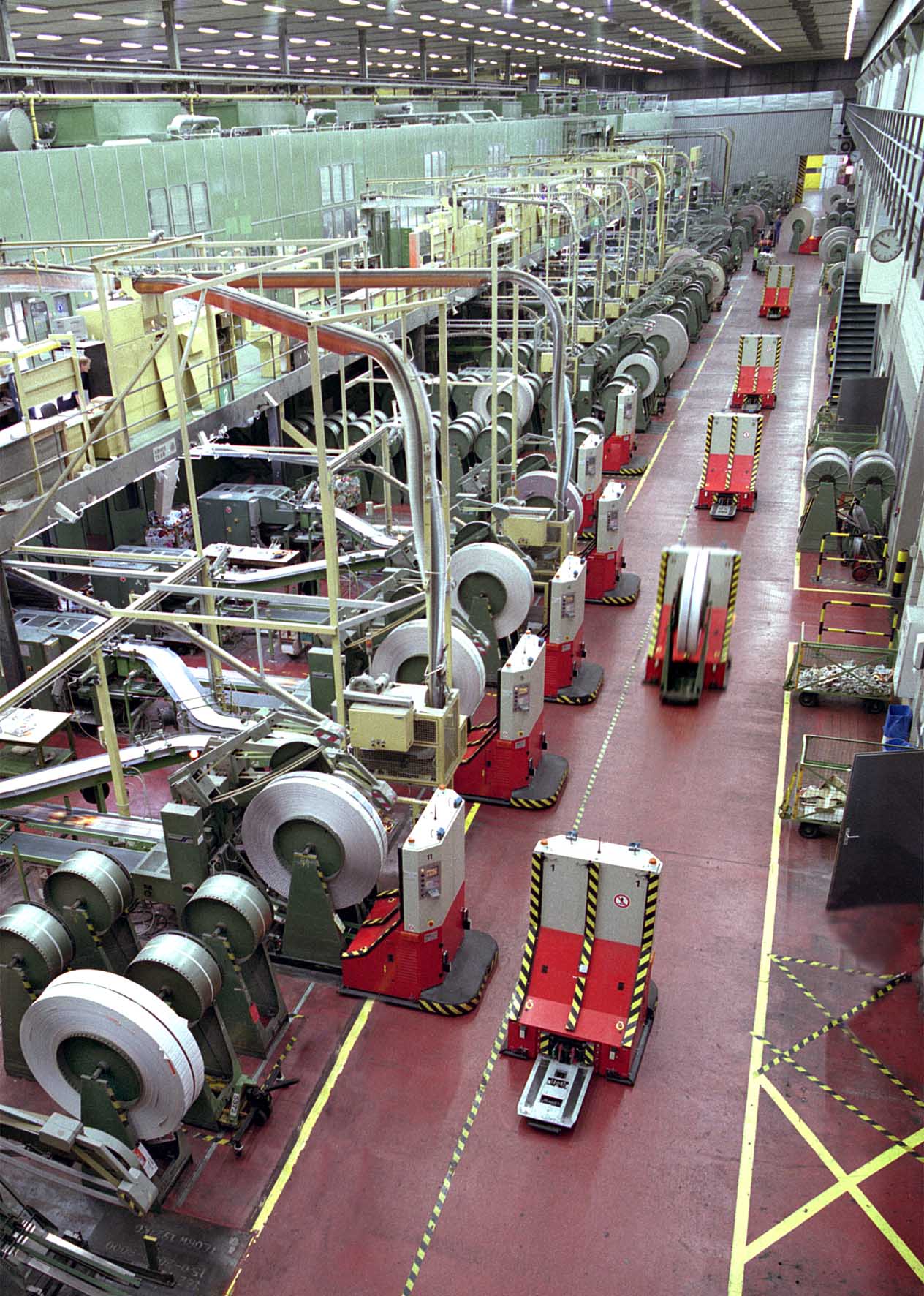 Ihre erste Anlage mit der Fähigkeit zur freien Navigation ohne Spurführung lieferten die Linzer Spezialisten 1994 an den Axel Springer Verlag in Hamburg. Die 25 Fahrzeuge transportierten bis zu 1.250 kg schwere Printrollen. Damals agierte das Unternehmen unter dem Dach der teilprivatisierten VA Tech AG als TMS (Transport- und Montagesysteme). Der erfolgreichen Umsetzung dieser herausfordernden Intralogistikanlage verdankt DS AUTOMOTION zahlreiche weitere Aufträge für innerbetriebliche Transportaufgaben.