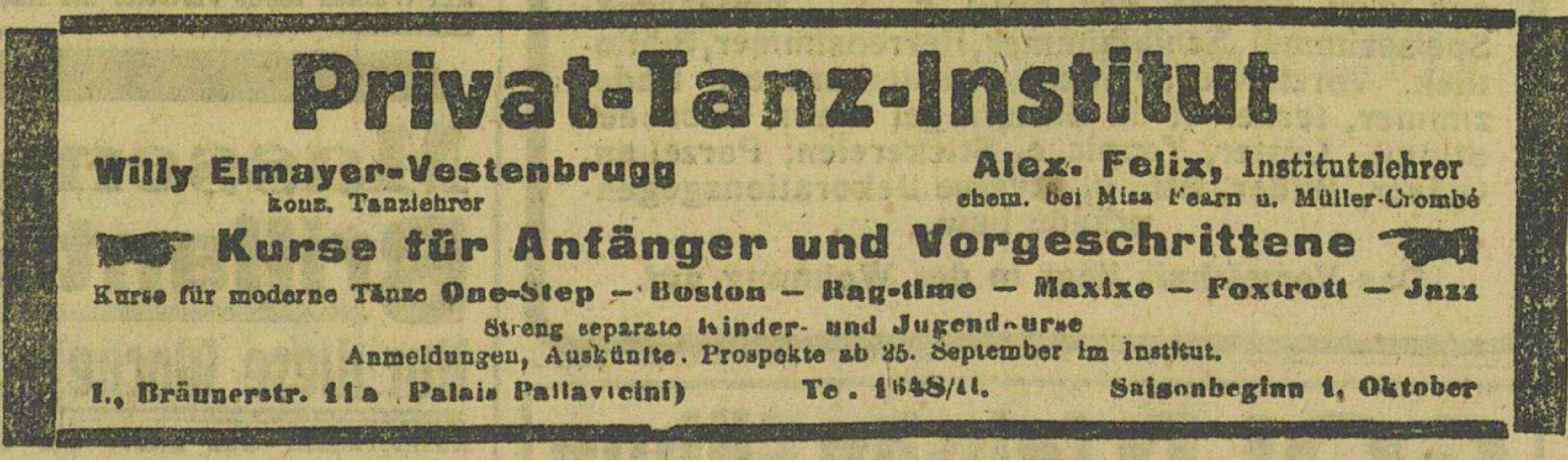 - Die erste Adresse für Tanzen und Benehmen befindet sich seit 100 Jahren in der Bräunerstraße 13, in den ehemaligen Stallungen des Palais Pallavicini