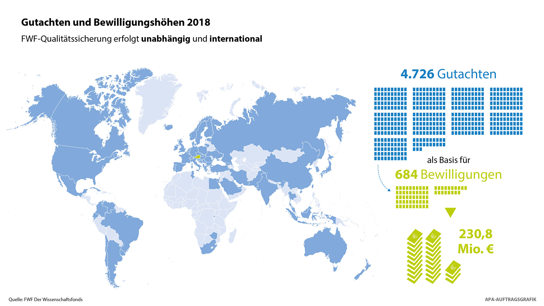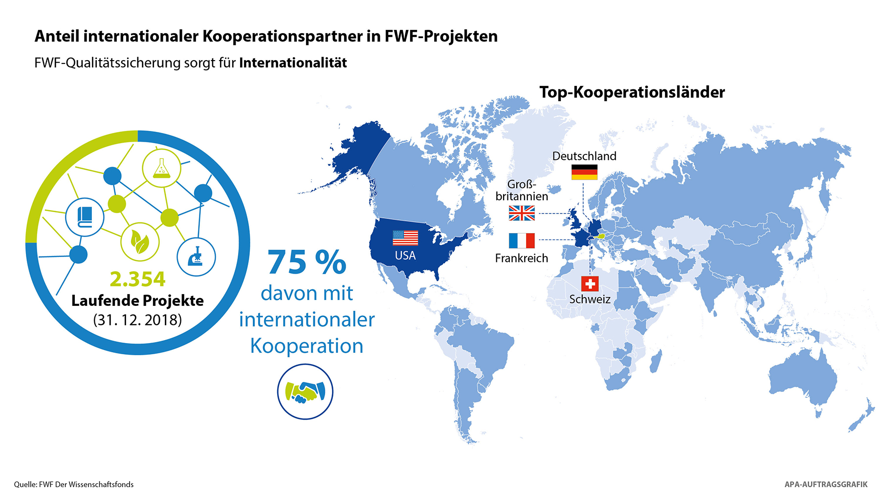 Geografisch gesehen ist Österreich ein kleines Land. Doch immer mehr Forscherinnen und Forscher heimischer Universitäten und außeruniversitärer Forschungsstätten zeigen im weltweiten Wettbewerb um die neuesten und bahnbrechendsten Erkenntnisse aus der Grundlagenforschung erfolgreich auf. Diesen Trend belegen nicht zuletzt die aktuellen Zahlen, die Wissenschaftsminister Heinz Faßmann und FWF-Präsident Klement Tockner am 14. Mai 2019 bei einer gemeinsamen Pressekonferenz im APA-Pressezentrum in Wien präsentierten.