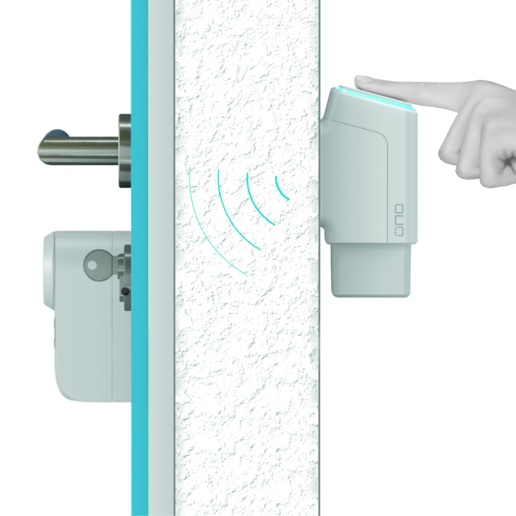 Auf der Innenseite der Türe wird über den Schlüssel der Türschlossantrieb montiert. Wird ein berechtigter Finger erkannt, schickt der Fingerscanner ein verschlüsseltes Signal, der Motor dreht den Schlüssel und sperrt so die Türe auf. Die gesamte Do-It-Yourself-Lösung ist bereits um EUR 378,- erhältlich. Bei Wohnsitzwechsel wird der ekey uno und der Türschlossantrieb einfach demontiert und anderswo wieder installiert. Darüber hinaus kann weiterhin mit einem mechanischen Schlüssel gesperrt werden.
