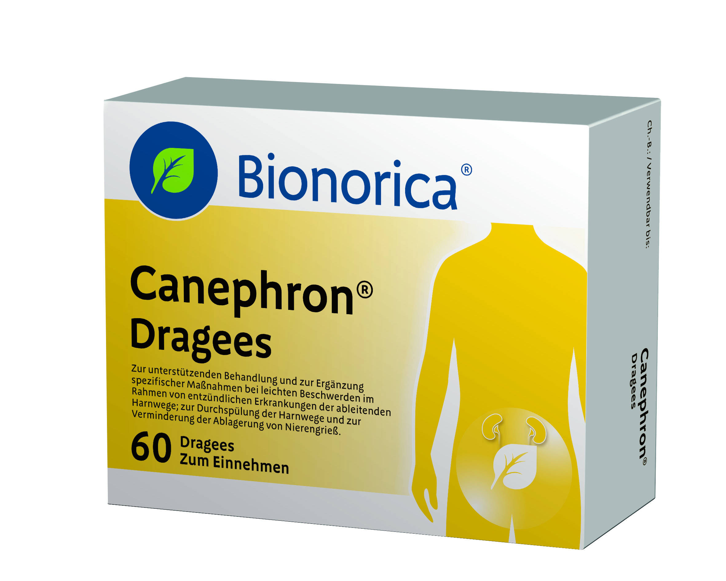 Canephron ist® ein rezeptfreies und apothekenpflichtiges pflanzliches Arzneimittel auf Basis traditioneller Zulassung. Die einzigartige pflanzliche Zusammensetzung von Canephron® ist für Patienten mit akuter, unkomplizierter Blasenentzündung aufgrund der krampflösenden, schmerzlindernden, entzündungshemmenden und bakterienausspülenden Eigenschaften durch sein breites pharmakologisches Wirkprofil besonders wertvoll. Canephron® Dragees sind als Packung zu 60 Stück ausschließlich in Apotheken erhältlich.