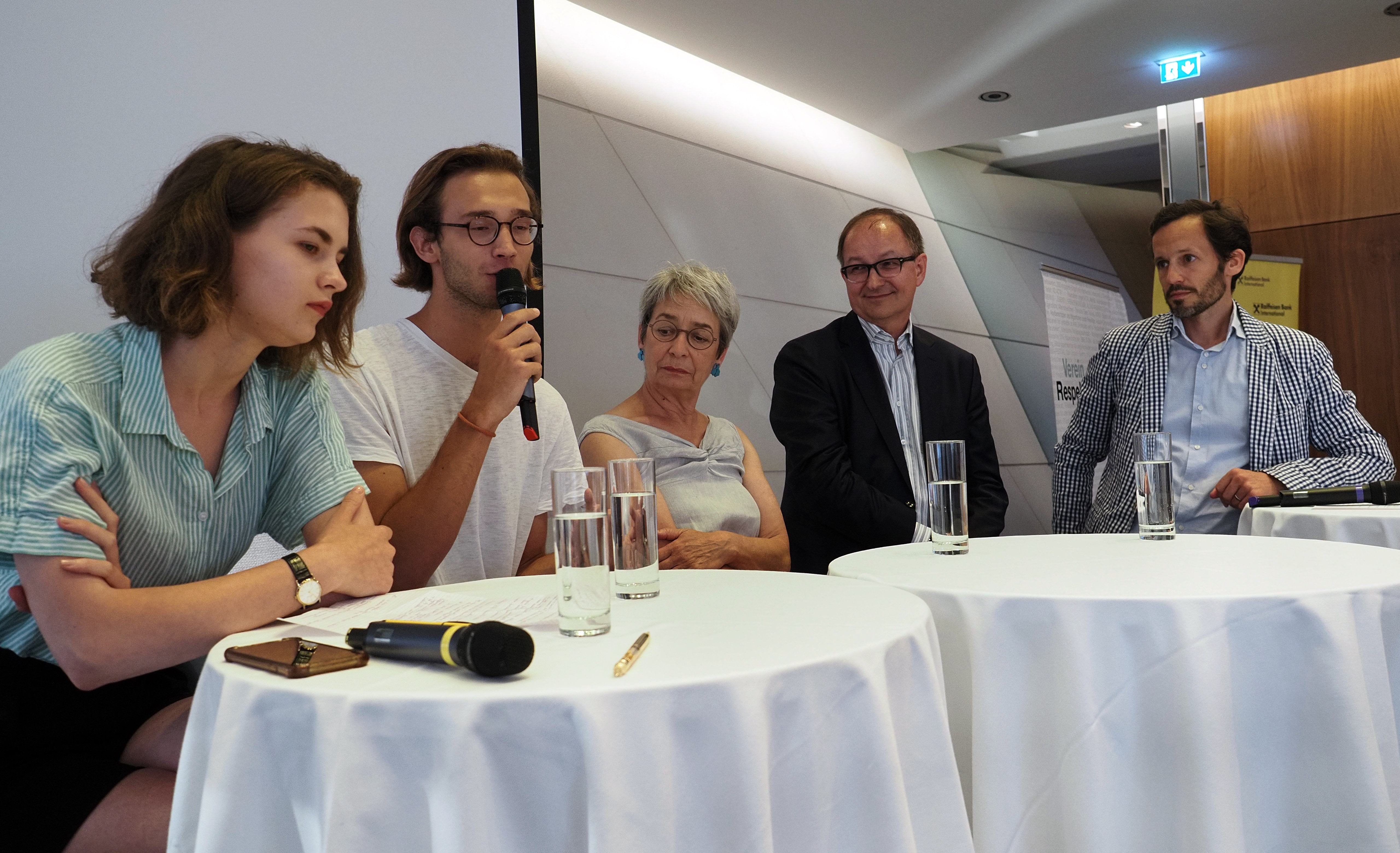 In der Sky Conference der Raiffeisen Bank International am Stadtpark, mit dem großartigen Rundblick über ganz Wien, feierten die Freundinnen und Freunde von Respekt.net an diesem heißen Sommerabend mit dem Trio Lepschi und Christof Spörk. In einer Diskussion zum Thema „Was braucht die Zivilgesellschaft jetzt, hier und heute?“ stellen die Präsidentin Bettina Reiter, Caritas-Generalsekretär Klaus Schwertner, der Gründer von Respekt.net Martin Winkler, Alisa Vengerova von den „Donnerstagsdemonstrationen“ und ein Vertreter von „Fridays for Future“ die aktuellen Fragen für die Weiterentwicklung unserer Gesellschaft.
