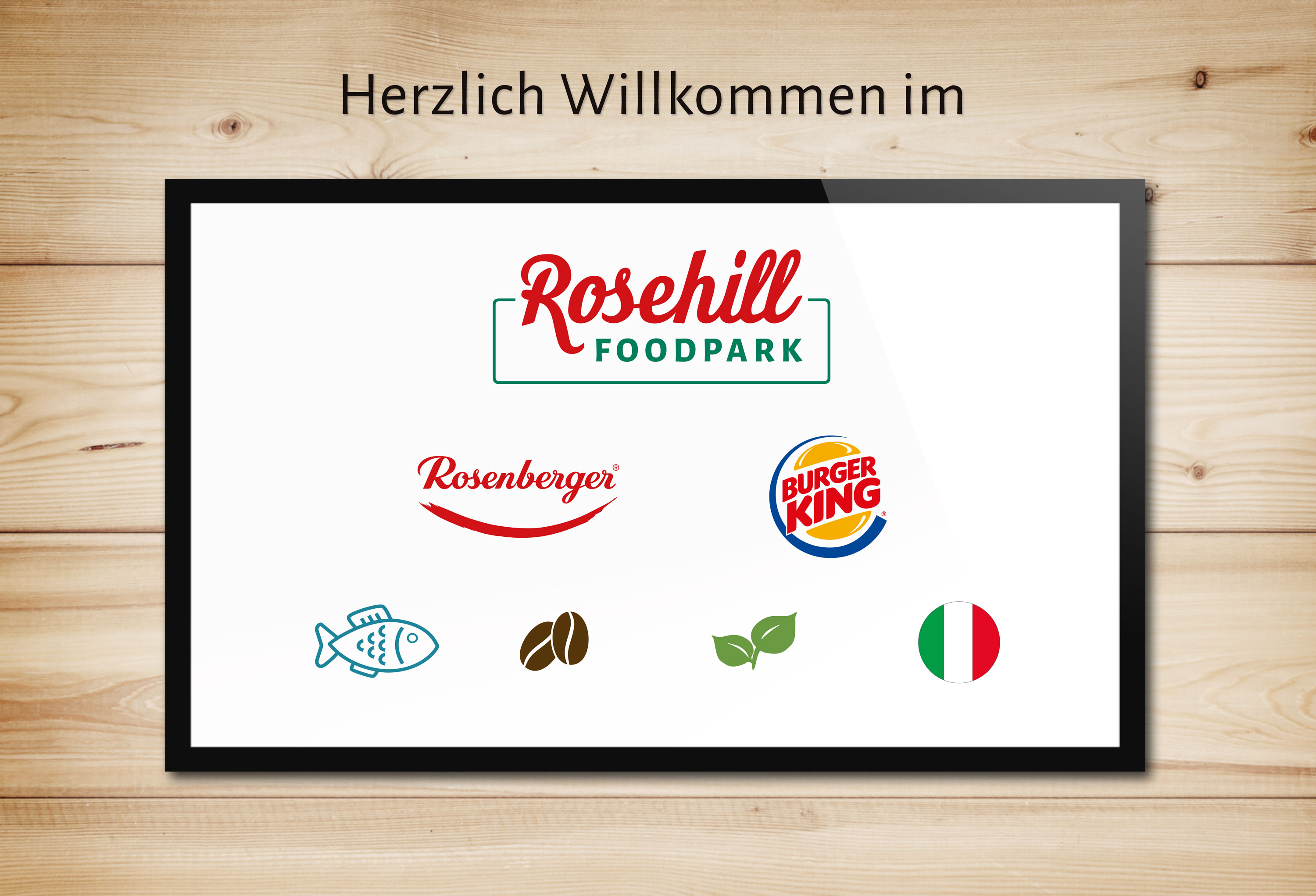 Der Name der neu kreierten Dachmarke „Rosehill Foodpark“ vereint die Bausteine „Tradition“, „Internationalität“ und „Vielfalt“ und damit die zentralen Werte des neuen Multibrand-Konzepts. „Mit der Namensverwandtschaft und graphischen Anlehnung zur Traditionsmarke Rosenberger wird der Wiedererkennungswert erhalten. Ziel war aber auch die vielen internationalen Gäste anzusprechen und gleichzeitig – mit dem Zusatz „Foodpark“ – den Grundgedanken der Marken- und Angebotsvielfalt zu kommunizieren.“, so Graf. Das neue „Rosehill Foodpark“ Logo wird bei jedem auf das Multibrand Konzept umgestalteten Rosenberger Standort zum Einsatz kommen.
