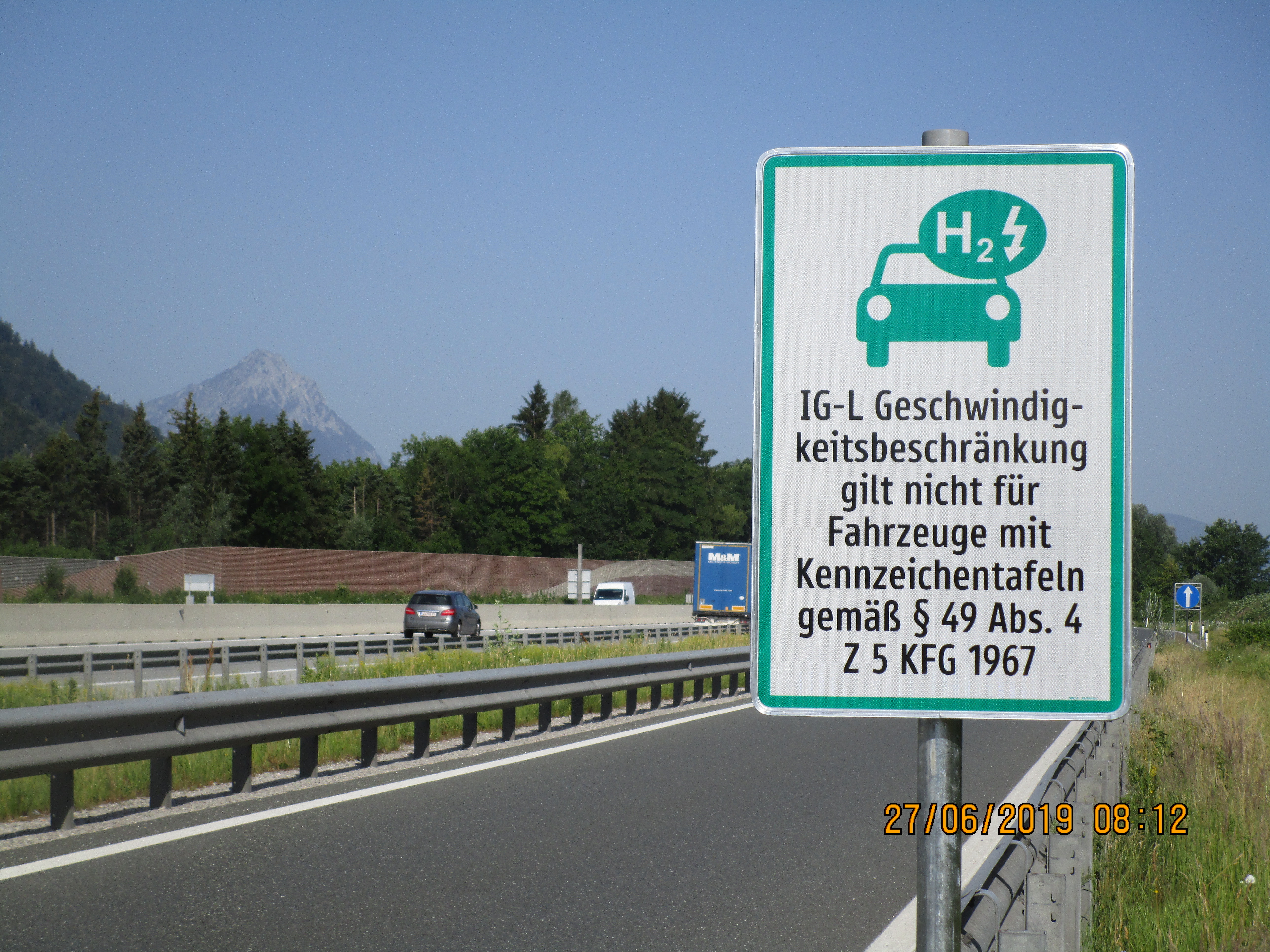 Nach den neuen gesetzlichen Regelungen müssen sich Lenkerinnen und Lenker von Elektro- oder Wasserstoff-Fahrzeugen („Null-Emissions-Kfz“) mit grüner Kennzeichen-Schrift mit 1. Juli 2019 nicht mehr an Tempobeschränkungen nach dem Immissionsschutzgesetz-Luft (IG-L) auf Autobahnen und Schnellstraßen halten.