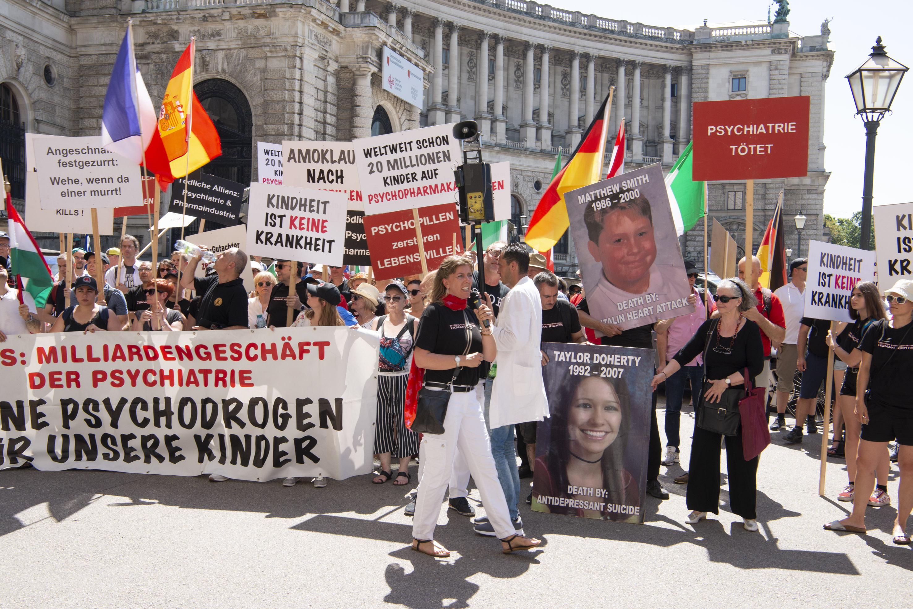 Anlässlich eines internationalen Kinder- und Jugend-Psychiatrie-Kongresses hat die Bürgerkommission für Menschenrechte am Sonntag zu einer großen Demonstration in Wien aufgerufen. Über 300 Demonstranten aus Österreich, Deutschland, Italien, Frankreich, Ungarn, Tschechien, der Slowakei, Dänemark, Schweden, Israel, Griechenland und der Schweiz fanden sich ein und protestierten gegen die menschenrechtsverletzenden Praktiken der Psychiatrie und die leichtfertige Vergabe von Psychopharmaka an Kinder, trotz bekannter funktionierender Alternativen.
