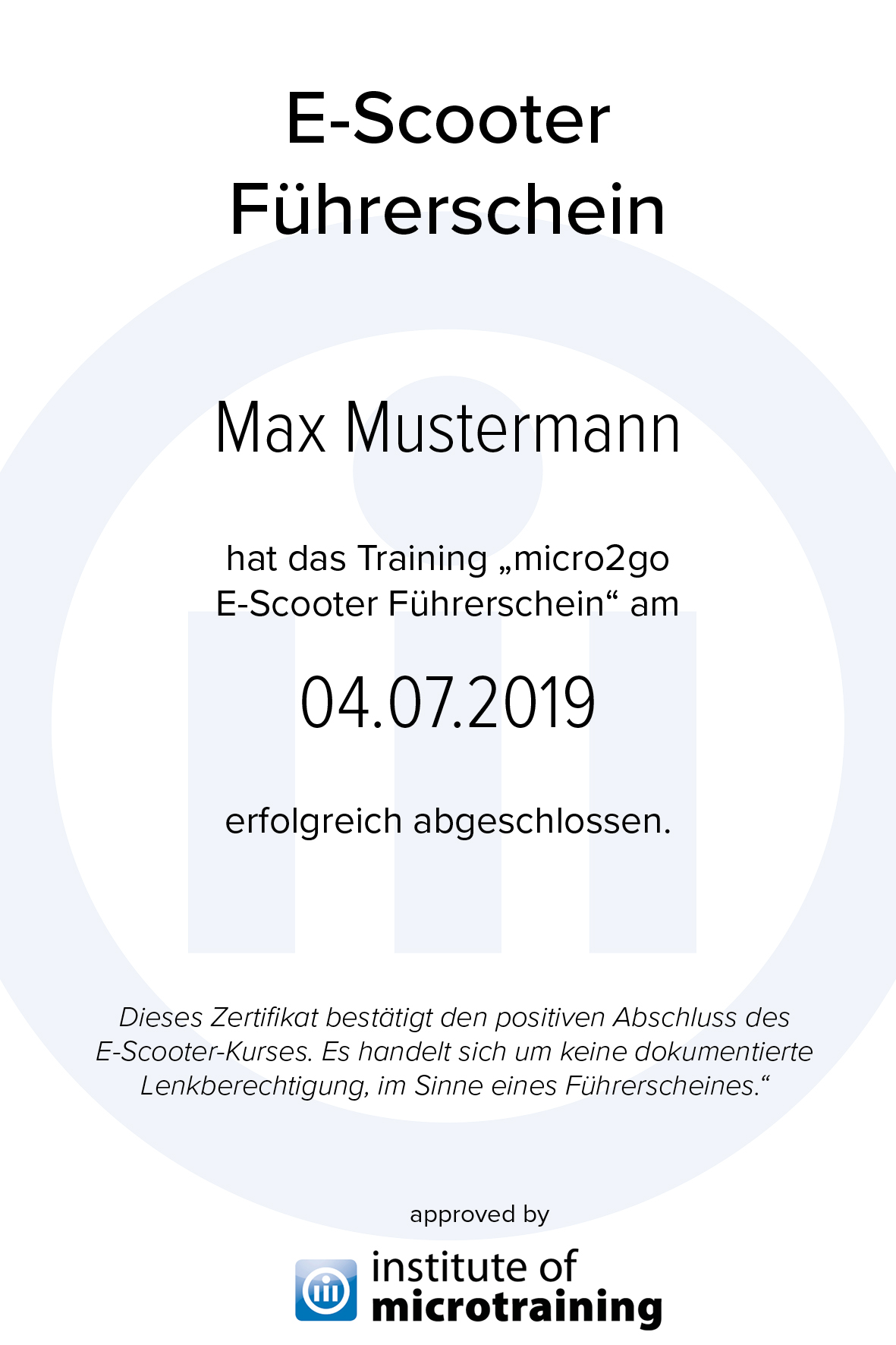 Für den sicheren Umgang mit dem E-Scooter hat das Institute of Microtraining (IOM) nun eine Lösung entwickelt. „Er ist so etwas wie die Platzreife beim Golf spielen und soll die Etikette im Umgang mit E-Scootern vermitteln, die man sonst nirgendwo findet“,