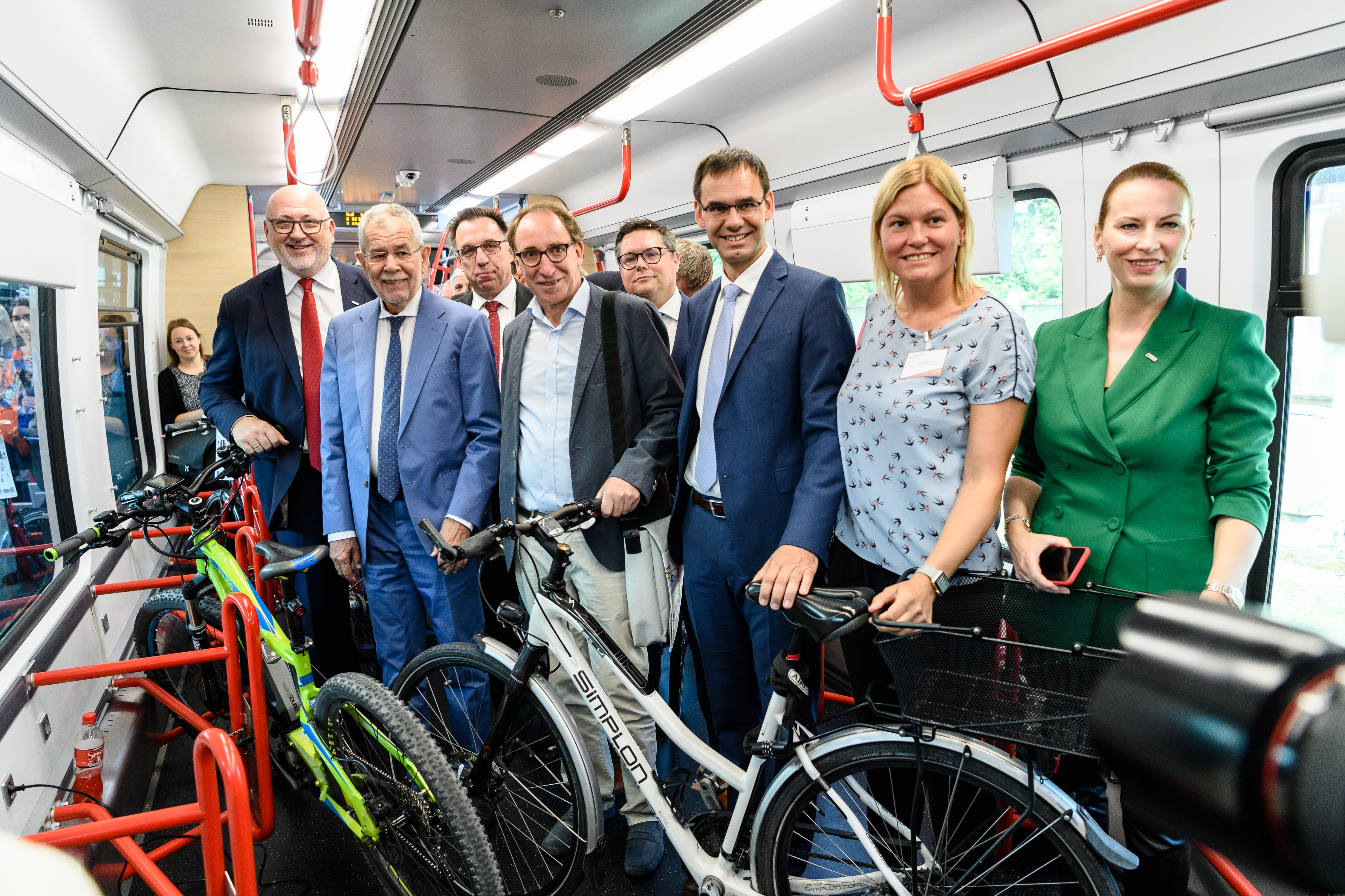Großes Interesse an den künftigen Vorarlberger Nah- und Regionalverkehrszügen: Tausende Besucherinnen und Besucher nutzten beim Bus-Bahn-Mobiltag heute in Dornbirn die Gelegenheit, den ÖBB Cityjet TALENT3 erstmals zu besichtigen. „Ein gut ausgebauter, moderner öffentlicher Verkehr ist eine wichtige Investition in den Klimaschutz“, betonte Bundespräsident Alexander Van der Bellen. Der CEO der ÖBB, Andreas Matthä, und Bombardier-Österreich-Geschäftsführer Christian Diewald, sprachen von einem „Premium-Produkt für Vorarlberg“. Landeshauptmann Markus Wallner und Landesrat Johannes Rauch hoben das dichte Netz umweltfreundlicher Mobilitätsangebote hervor, das vom Verkehrsverbund koordiniert wird.