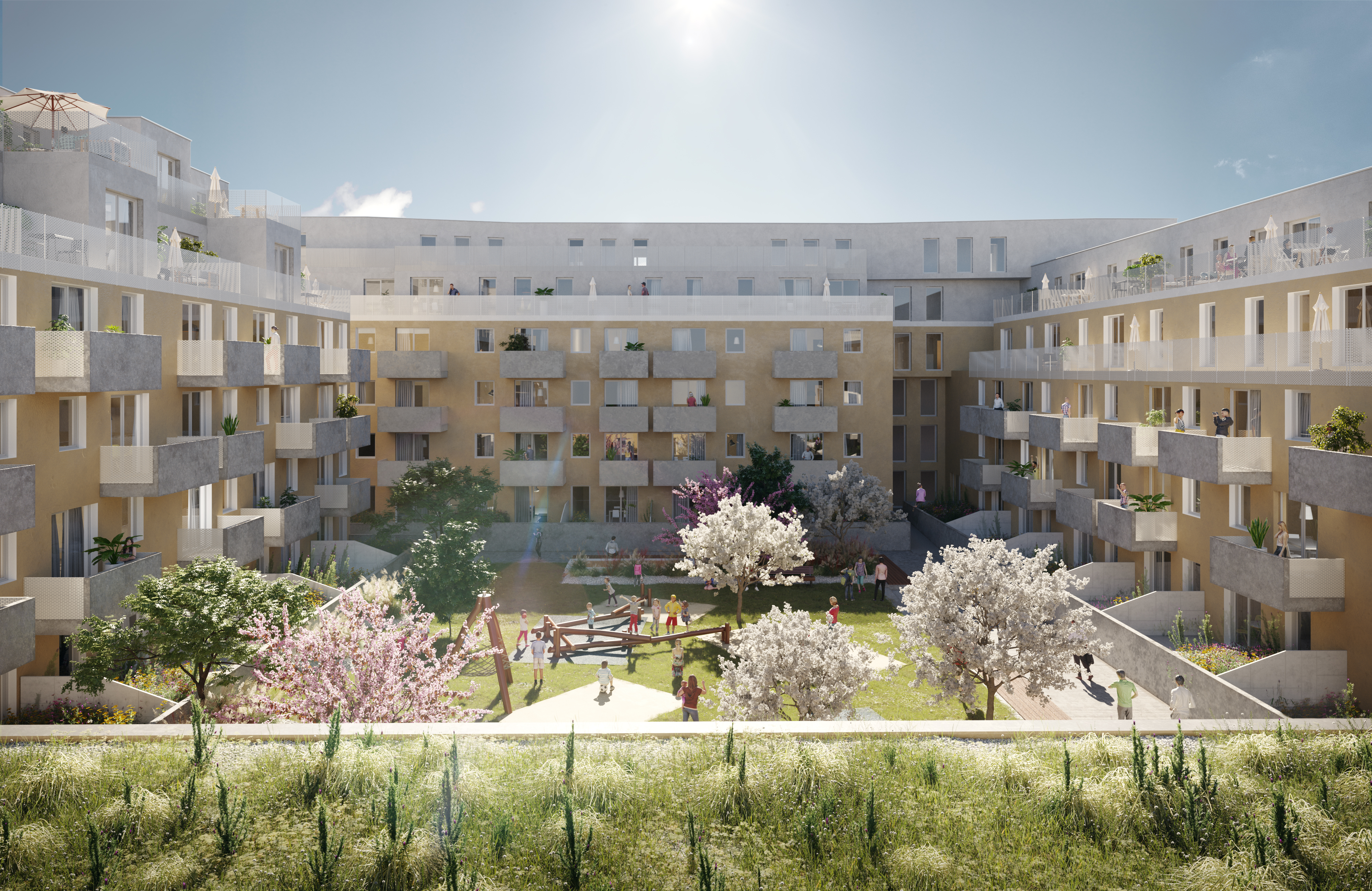 Die Wohnungen bestehen zu einem überwiegenden Teil aus ein, zwei oder drei Zimmern und sind für Singles, Paare aber auch Kleinfamilien konzipiert. Eine hochwertige und funktionale Ausstattung ist ebenso Teil des Konzepts wie intelligent geplante Wohnungsgrundrisse. Alle Wohnungen verfügen über Loggia, Balkon oder Dachterrasse und bieten so zusätzlichen Platz im Freien mit Blick auf den begrünten Innenhof. Darüber hinaus wird der Gebäudekomplex über Gemeinschaftsräume als auch Paketboxen, Fahrradräume und eigene Kellerabteile verfügen. Unter dem Gebäude ensteht eine Tiefgarage mit 128 Stellplätzen.