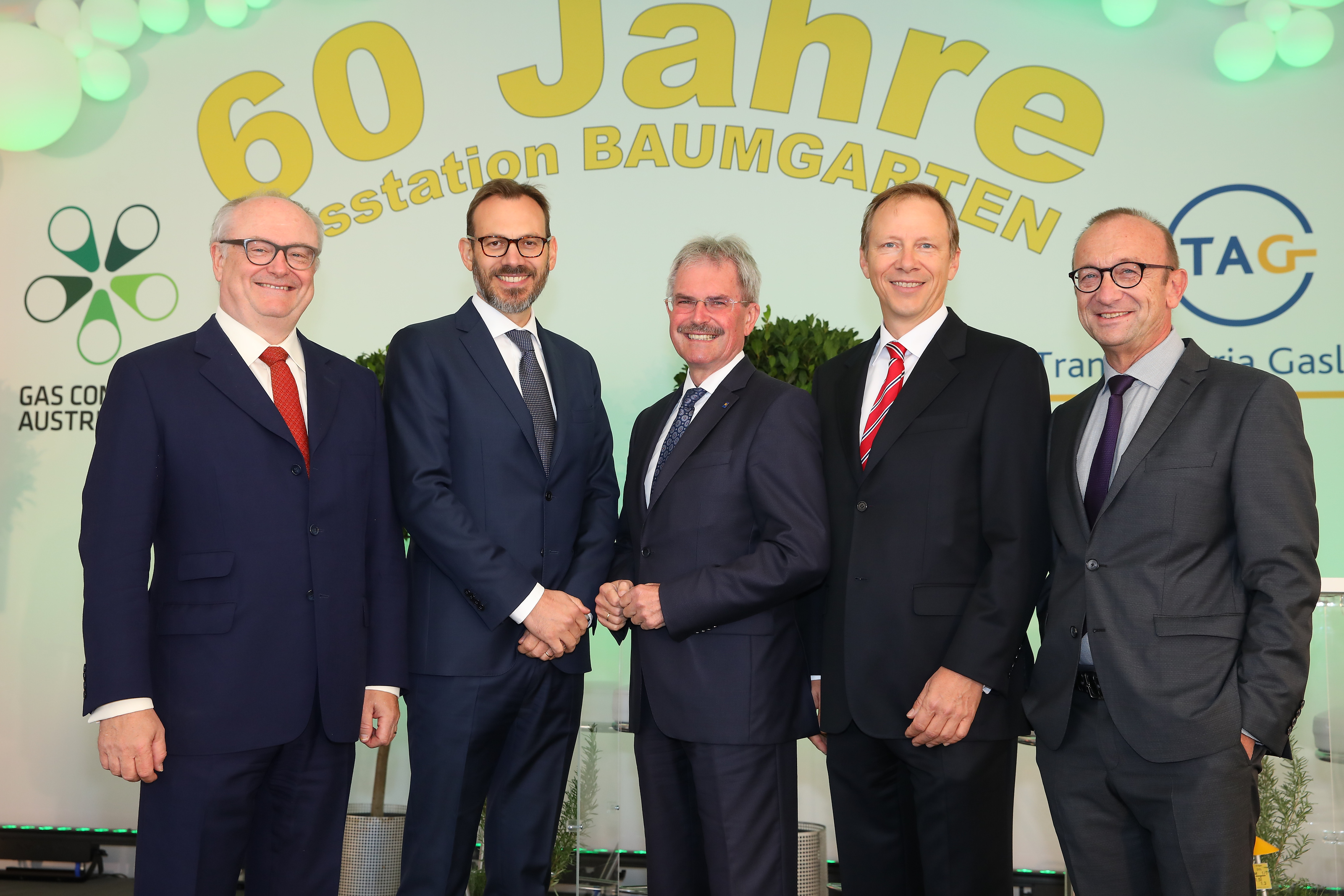 Das 60-Jahr-Jubiläum würdigten die beiden Betreiberunternehmen Gas Connect Austria GmbH und Trans Austria Gasleitung GmbH heute mit Vertretern aus Politik und Energiewirtschaft, darunter Eigentümervertreter Rainer Seele, CEO der OMV, Marco Alverà CEO der SNAM, Christoph Holzer, Managing Director Allianz Capital Partners und Experten, wie dem ehemaligen EU-Energiekommissar Andris Piebalgs sowie internationalen langjährigen Geschäftspartnern wie Elena Burmistrova, stellvertretende Vorstandsvorsitzende der Gazprom.