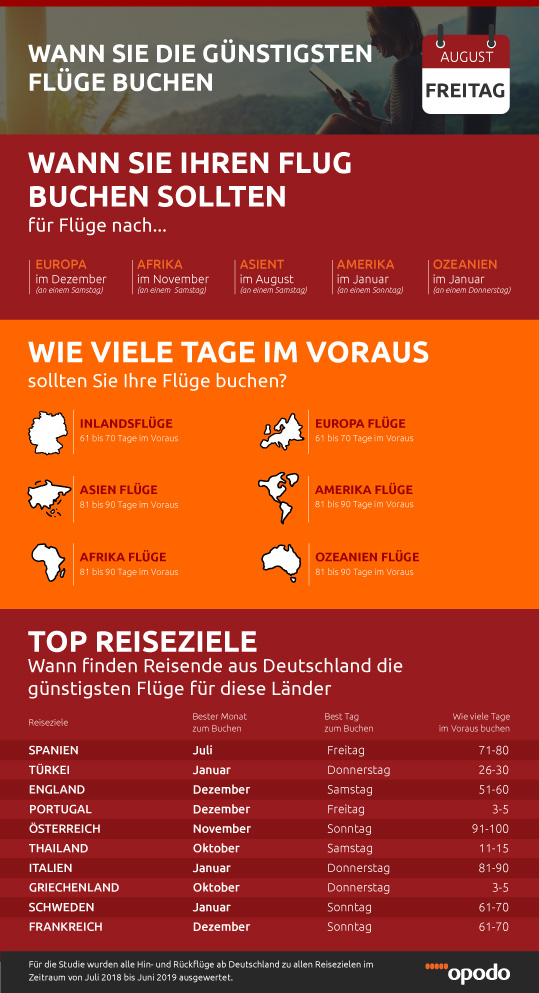 Die Daten zum besten Zeitraum für eine Buchung hat Opodo auf einer interaktiven Website aufbereitet: https://www.opodo.de/wann-billig-fluege-buchen/