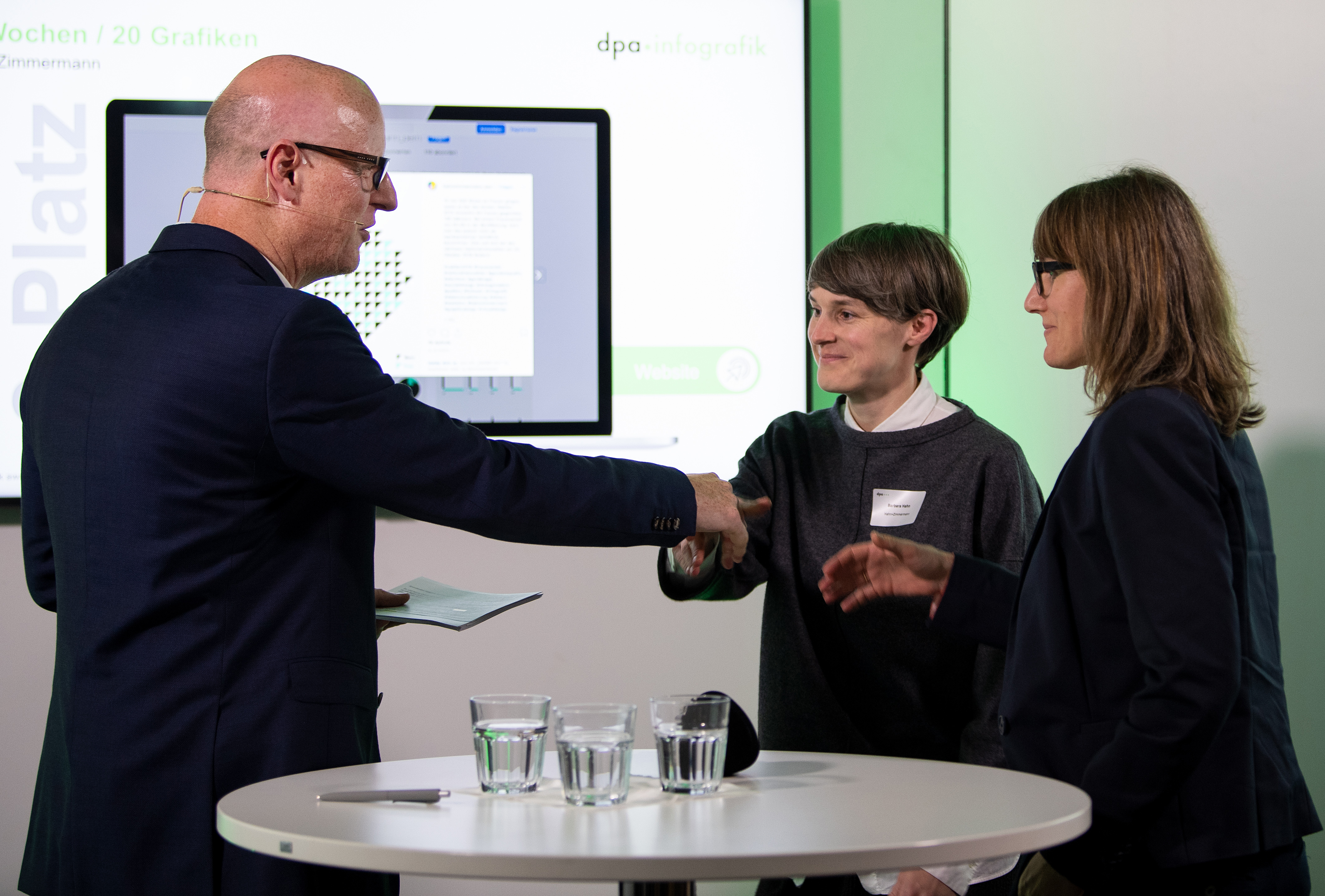 "Ich freue mich über die sichtbare Weiterentwicklung des gesamten Genres", sagt Frank Rumpf, Geschäftsführer von dpa-infografik und Jurymitglied. "Die richtungweisenden Arbeiten für Online-Medien schöpfen immer besser die Möglichkeiten der digitalen Darstellung aus. Die Entscheidung der Jury unterstreicht die Exzellenz und die Kreativität der prämierten Grafiken."