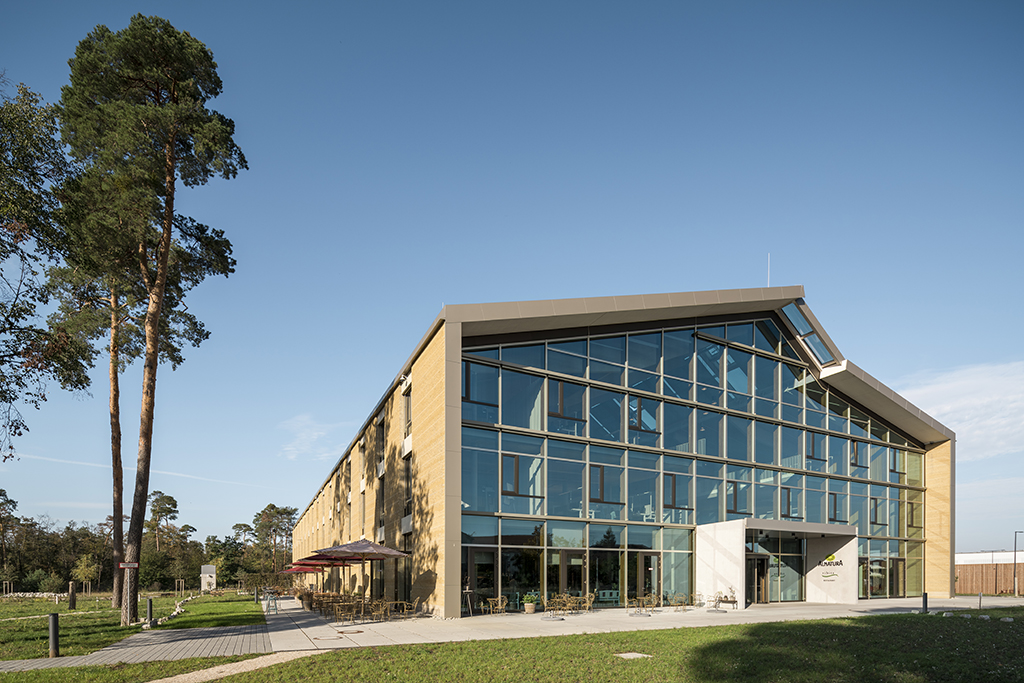 Bereits im März 2019 wurde der Alnatura Unternehmenssitz von der Deutschen Gesellschaft für Nachhaltiges Bauen (DGNB e.V.) mit der Bestnote Platin ausgezeichnet. Diese Zertifizierung erhalten nur besonders umweltfreundliche, ressourcenschonende und funktionale Bauten, die sich vorbildlich in ihr soziokulturelles Umfeld integrieren. Das in Lehmbauweise auf einem renaturierten, ehemaligen US-Militärgelände errichtete Gebäude wurde konzipiert vom Stuttgarter Architekturbüro haascookzemmrich.