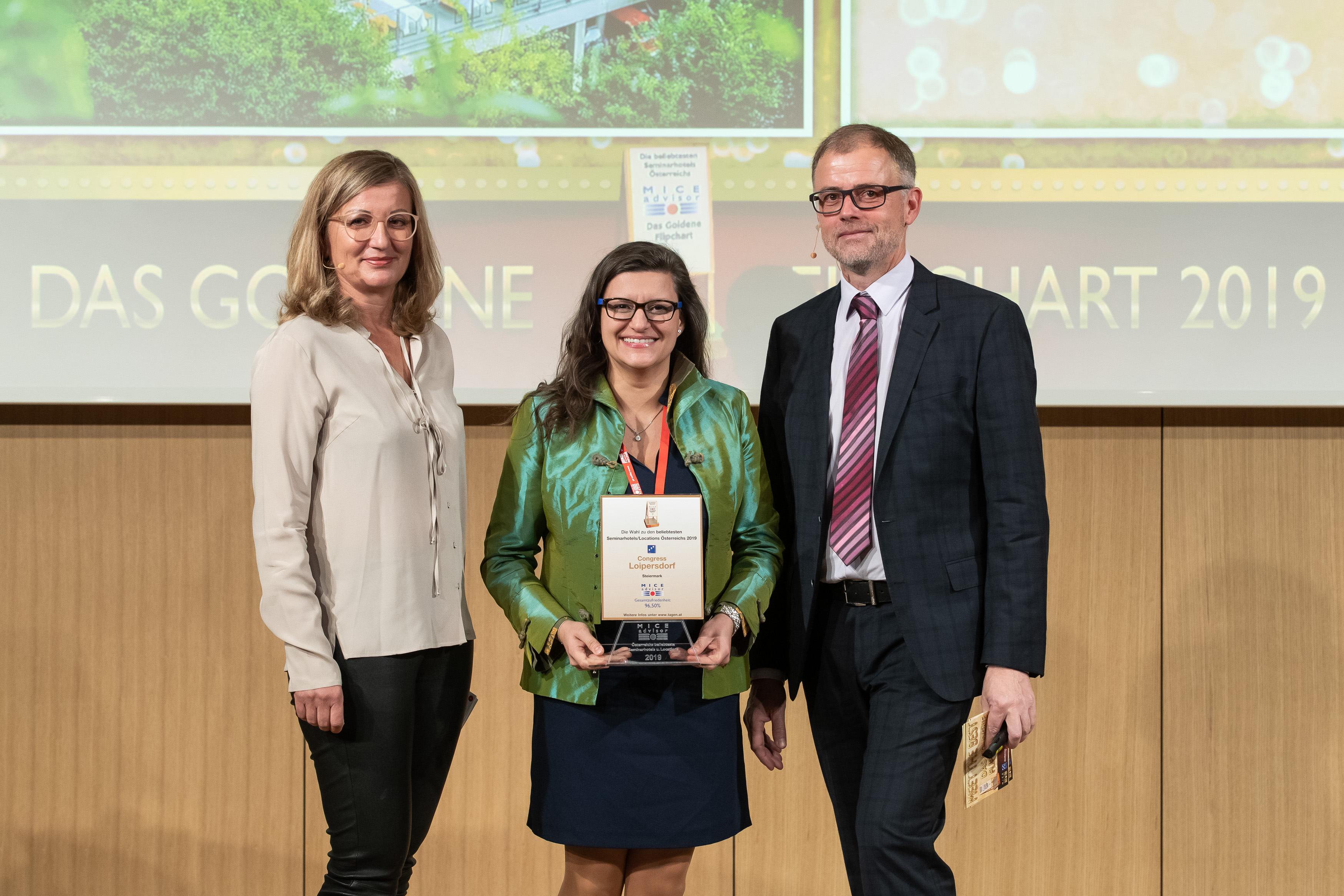 Mit 96,5 Prozent Gesamtzufriedenheit schaffte es das beliebte Congress-Center im Grünen wieder unter die Besten der Besten. Bei der jährlichen Veranstaltung „Meet the best“ trafen sich die großen Namen der österreichischen Seminar- und Tagungsbranche im OÖNachrichten Forum. Der „Goldene Flipchart“ gilt bundesweit als Oscar der Tagungs- und Seminarbranche und ist zusammen mit dem umfangreichen Bewertungssystem „MICEadvisor“ von „Tagen in Österreich“ ins Leben gerufen worden. Mit den Stimmen von Seminarbesuchern, Trainern und Trainerinnen im ganzen Land erhalten Seminarhotels für Ihre Leistungen „Flipcharts“, ähnlich wie Hotels Sterne.
