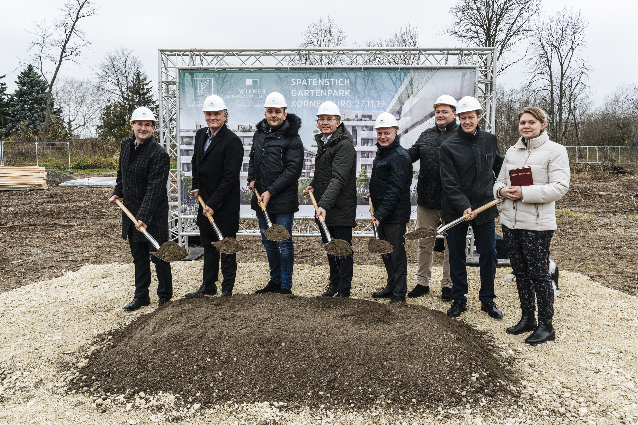 Wiener Komfortwohnungen errichtet in Korneuburg mit dem Gartenpark Korneuburg ein aus fünf Baukörpern bestehendes Wohnprojekt. Der symbolische Spatenstich für das von den bekannten Architekten Moser Architects entworfene Gebäudeensemble erfolgte heute, Mittwoch, den 27.11 2019 durch Wiener Komfortwohnungen-CEO Alexander Finster, Stadtrat und Nationalrat Andreas Minnich, Wohnbaustadtrat Korneuburg Hubert Holzer, Sascha Geyer Raiffeisenbank Korneuburg, Mag. Gerhard Humer Raiffeisenlandesbank AG OÖ sowie CEO der Moser Architects Marius Moser. Nach Fertigstellung wird der Gartenpark Korneuburg über mehr als 17.000 m² Nettonutzfläche verfügen, die Fertigstellung ist für 2022 geplant. Das Projektvolumen beläuft sich auf rund EUR 125 Mio.