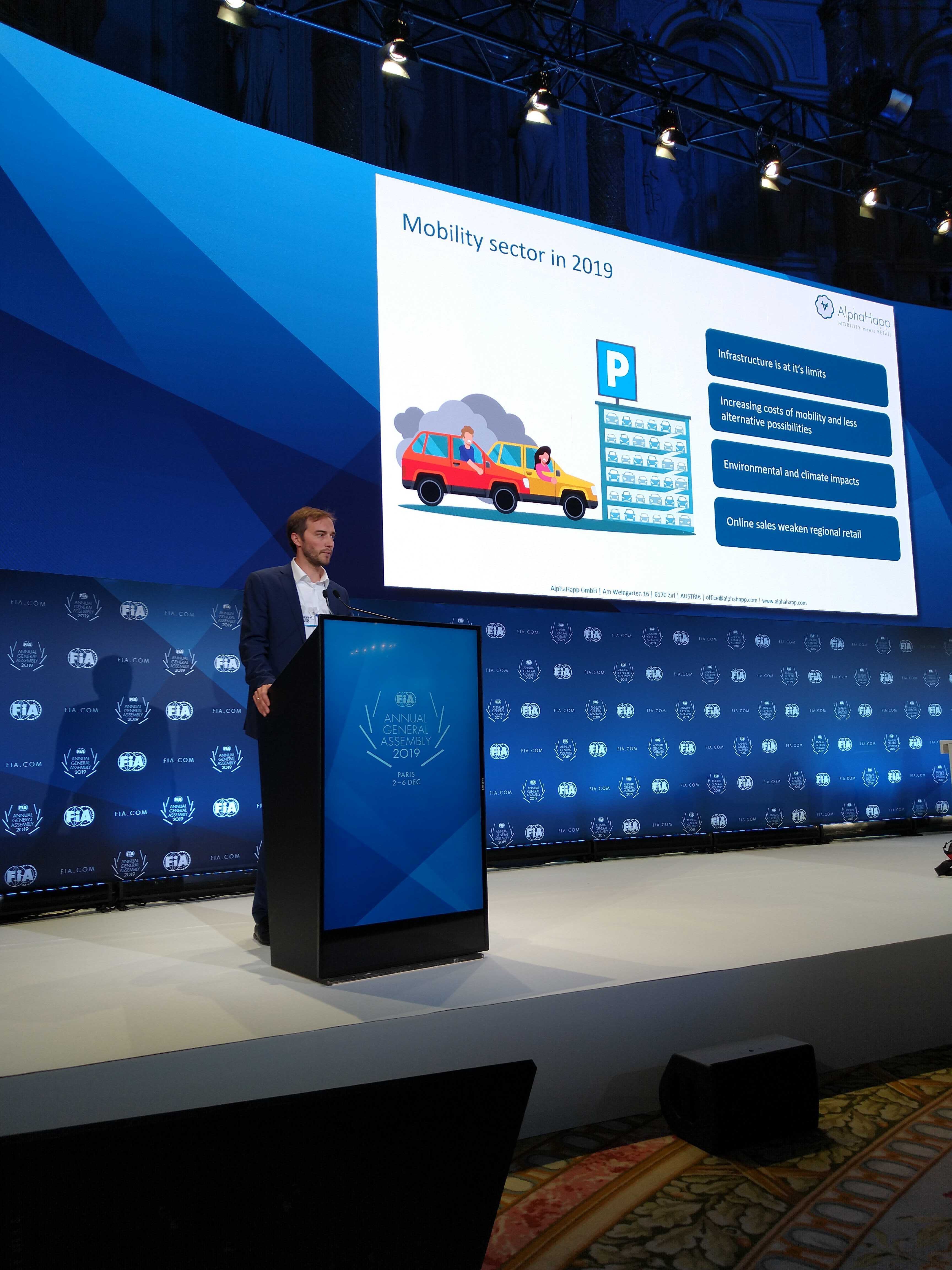 Mit der in Tirol entwickelten Moblitätsplattform wurde das junge Unternehmen als Gewinner der FIA Region 1 Start-Up Challenge zur Jahreshauptversammlung der FIA (Federation Internationale de l’Automobile) eingeladen. Vor Ort waren 240 Mobilitätsclubs, die weltweit über 80 Millionen Mitglieder vertreten. Auf der Bühne und in angeregter Gesprächsatmosphäre wusste das Konzept zu überzeugen.