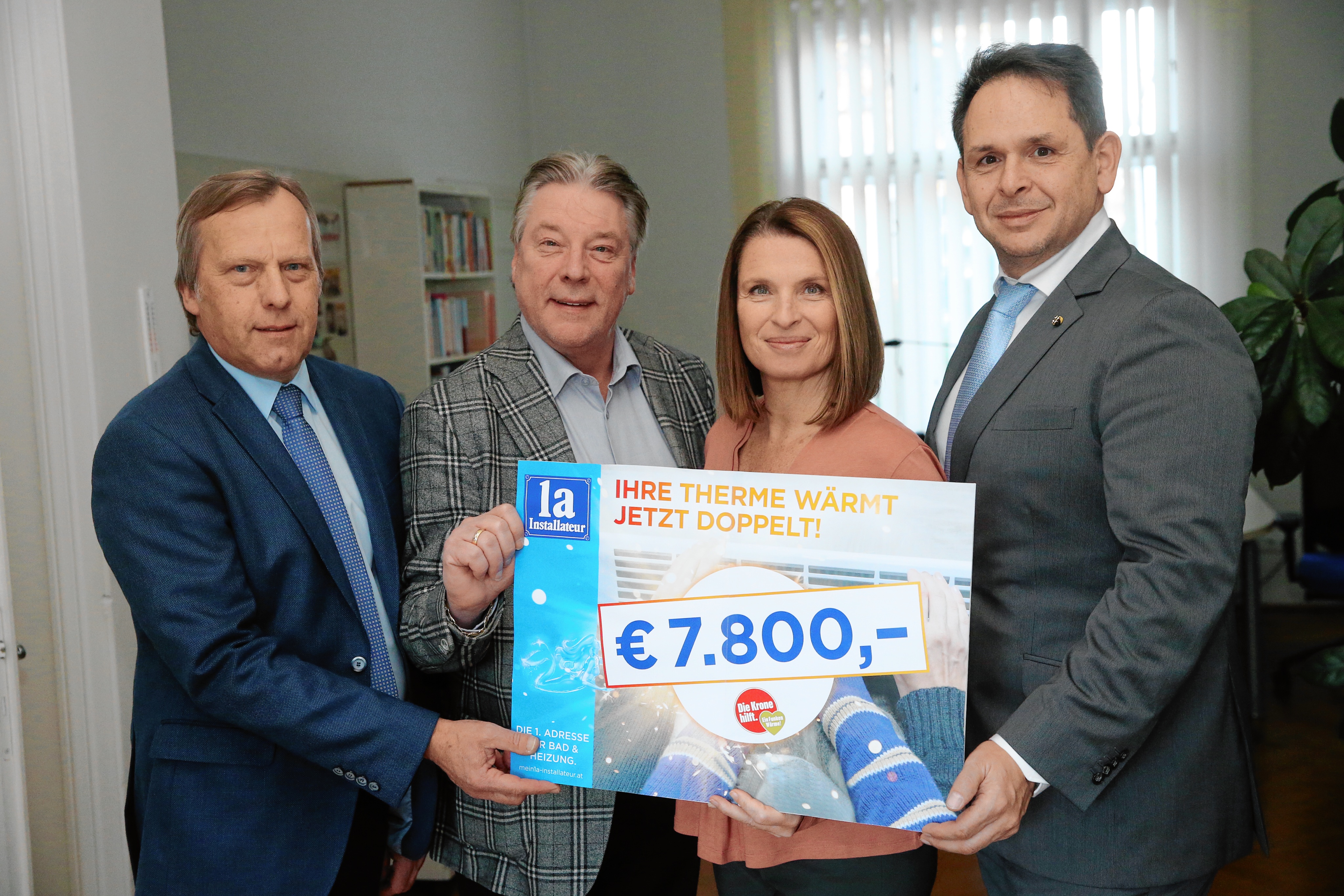 1a-Installateure sind nicht nur der richtige Ansprechpartner für maßgeschneiderte Wohlfühl-Badezimmer und energieeffiziente Heizlösungen für den Klimaschutz, sondern auch Menschlichkeit und soziales Engagement liegen ihnen am Herzen. Mit dem Motto „Ihre Therme wärmt jetzt doppelt!“ spendeten die Wiener 1a-Installateure bei allen Thermenwartungen im September bis November automatisch einen Euro an die Aktion „Ein Funken Wärme“ der Caritas Wien. Insgesamt konnten mit dieser Aktion 7.800 Euro gesammelt werden, die nun an die Schirmherrin der Aktion "Ein Funken Wärme", Barbara Stöckl, übergeben werden konnte. Mit der Beteiligung an der Hilfsaktion von Caritas und Kronen Zeitung wird jenen unter die Arme gegriffen, die sich im Winter das Heizen nicht bzw. nur schwer leisten können.