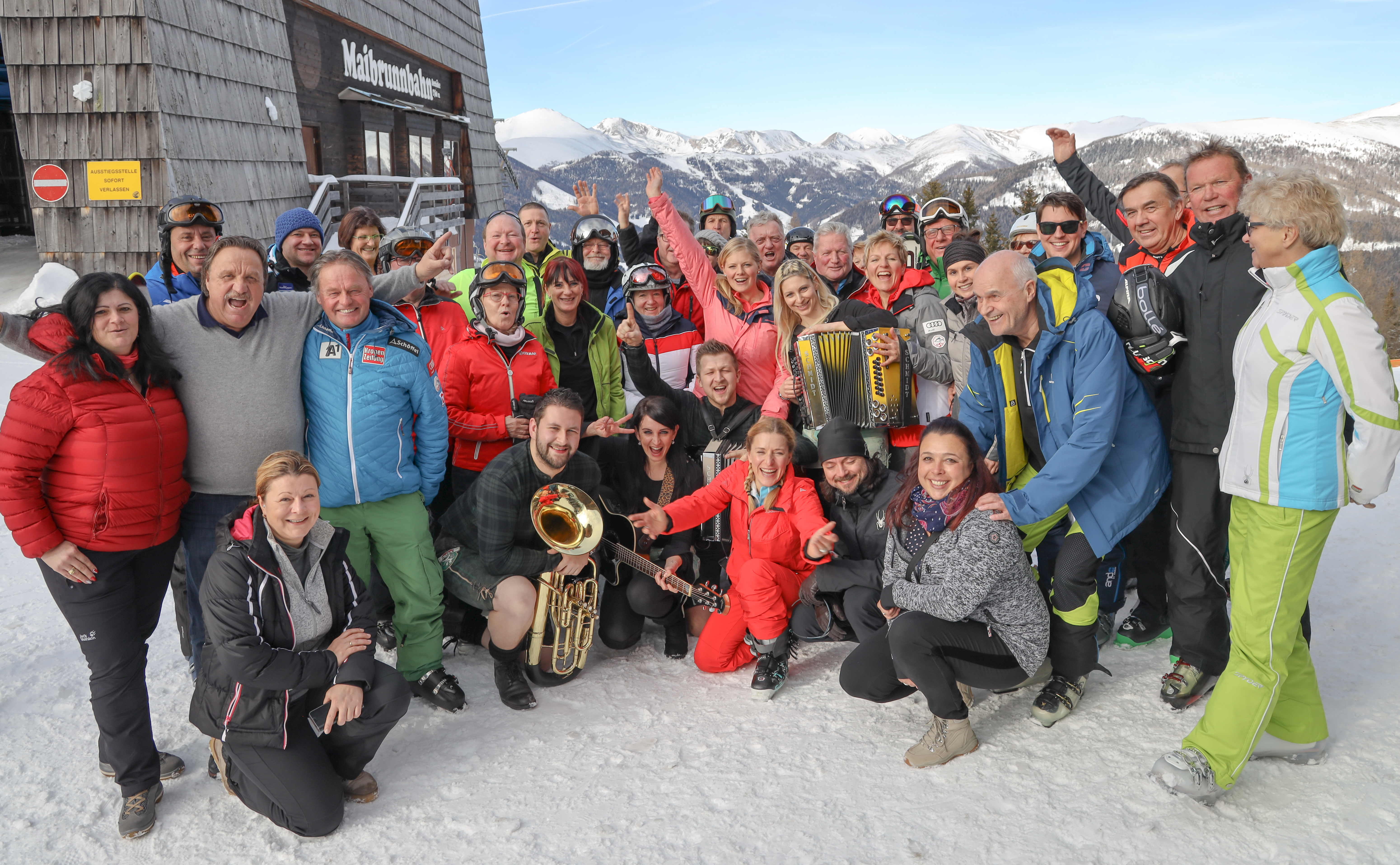 Für die musikalische Umrahmung bei der Hüttengaudi sorgen das Rotwein Trio, das Kärntner Skilehrer Trio, "Die Granaten" und "Die jungen Thierseer".