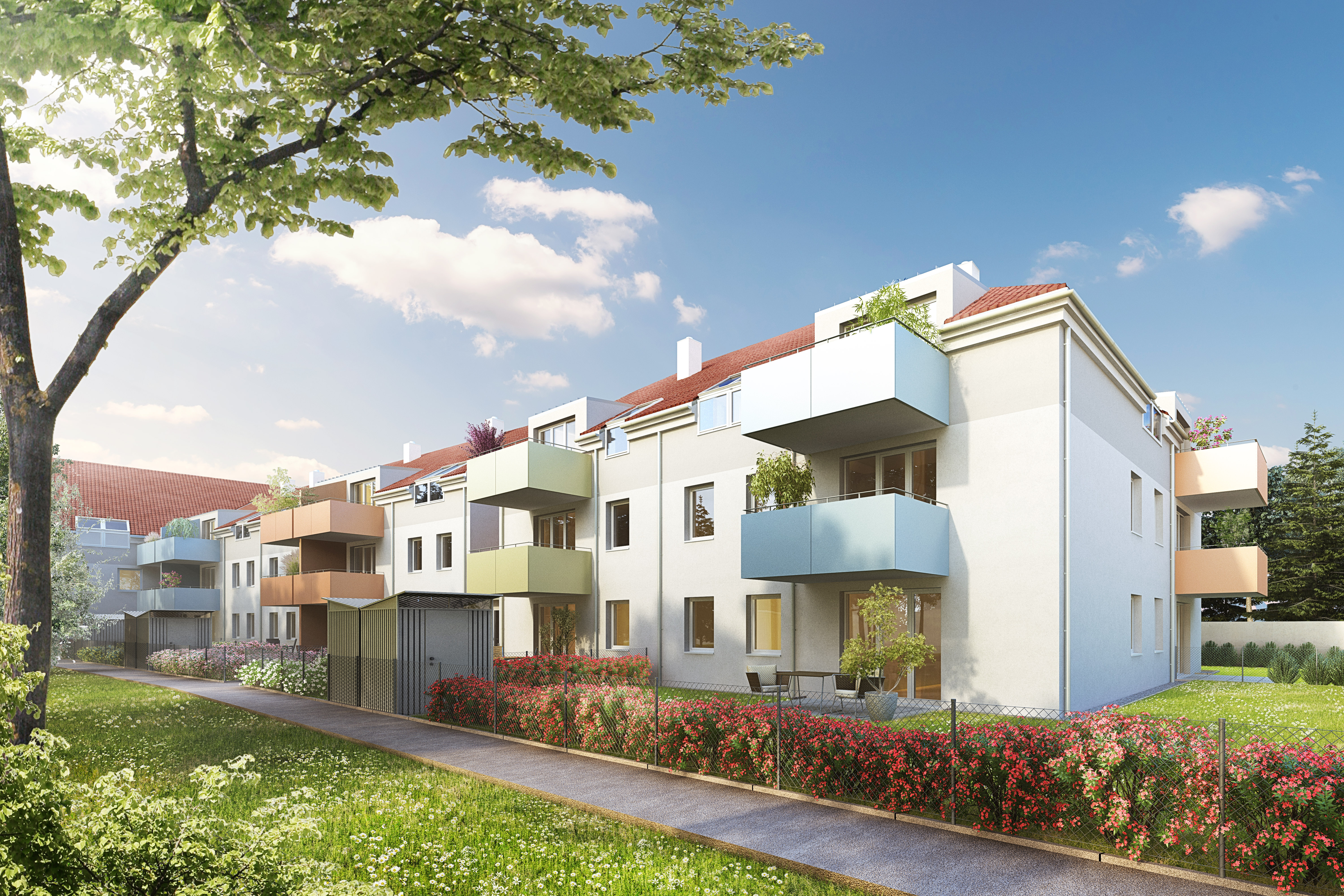 - große Mietergärten (bei den Erdgeschoßwohnungen)