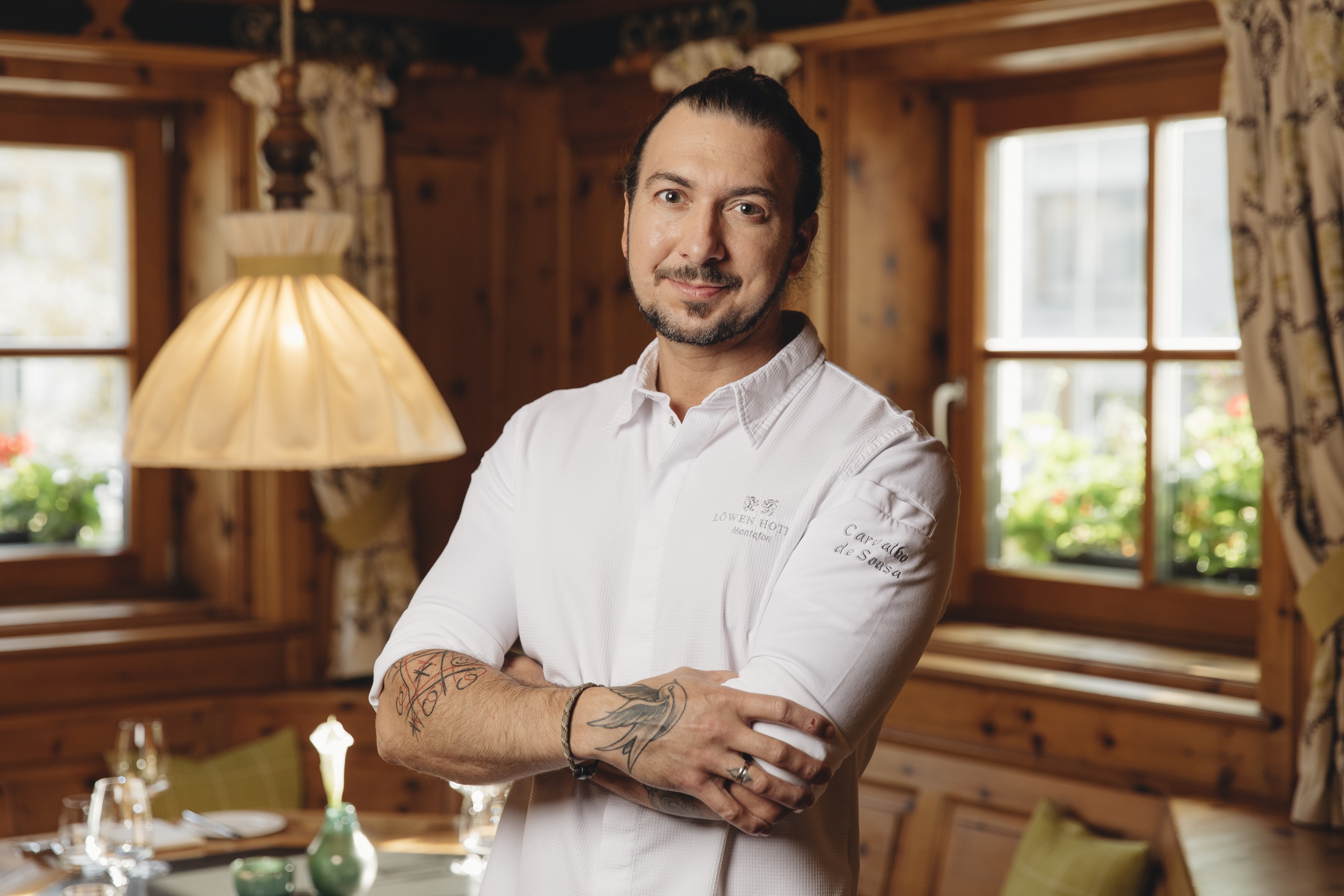 Thomas Carvalho de Sousa ist seit 2014 Küchenchef im Löwen Hotel Montafon in Schruns. Mit ihm legt die Löwen Stube einen kulinarischen Höhenflug hin. Der Küchenchef setzt dabei auf regionale Produkte, die er mit den besten Zutaten aus aller Welt kombiniert. Sein Ansatz ist es, die hochwertigen Produkte in den Vordergrund zu stellen, die Gerichte auf das Wesentliche zu reduzieren und dafür auf verspielte Elemente zu verzichten. Als Ergebnis kommen kulinarische Meisterwerke auf den Tisch, die geschmacklich und optisch begeistern.