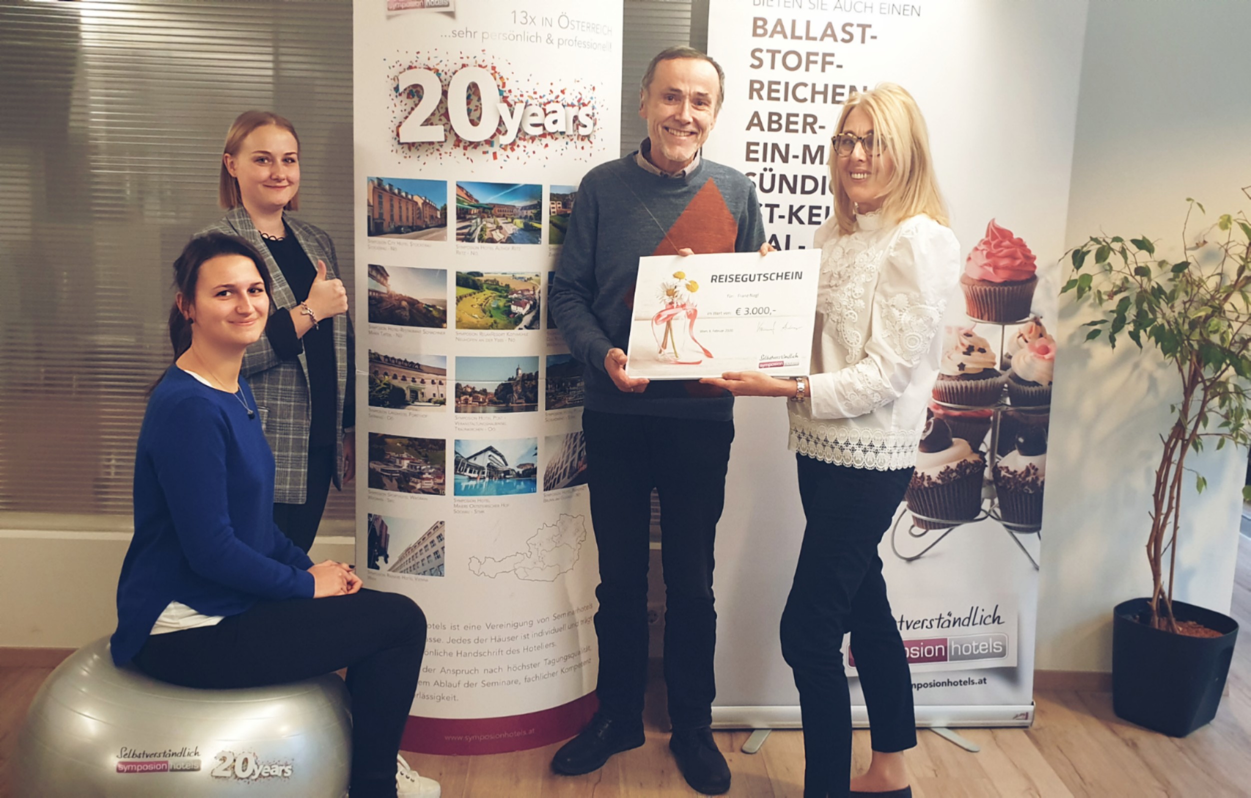 Bewerten wird belohnt! Unter allen Umfrageteilnehmern wurde ein Reisegutschein im Wert von € 3.000, - verlost. Heuer ist Franz N. vom Bundesministerium für Finanzen der glückliche Gewinner. Da er als Trainer einen großen Teil seiner Arbeitszeit in Seminarhotels verbringt und dadurch schon in fast allen Symposion Hotels war, freut er sich umso mehr gezogen worden zu sein.
