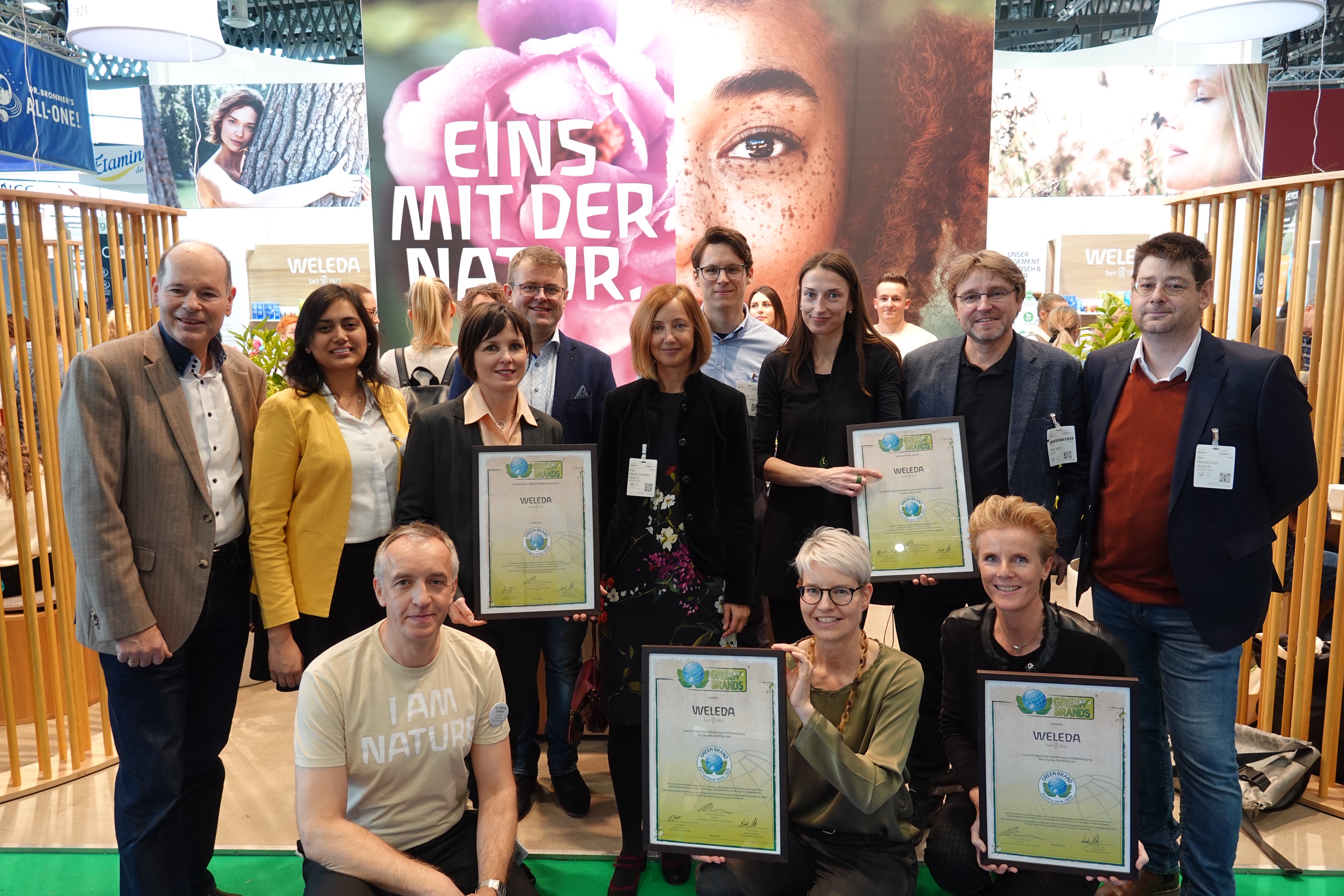 Große Freude und Stolz am BIOFACH - bzw. VIVANESS-Stand der WELEDA AG vor ein paar Tagen auf der Weltleitmesse für ökologische Konsumgüter in Nürnberg: So erhielt das Unternehmen die GREEN BRANDS-Auszeichnungen gleichzeitig für die vier Länder Österreich, Schweiz, die Tschechische Republik und Ungarn.