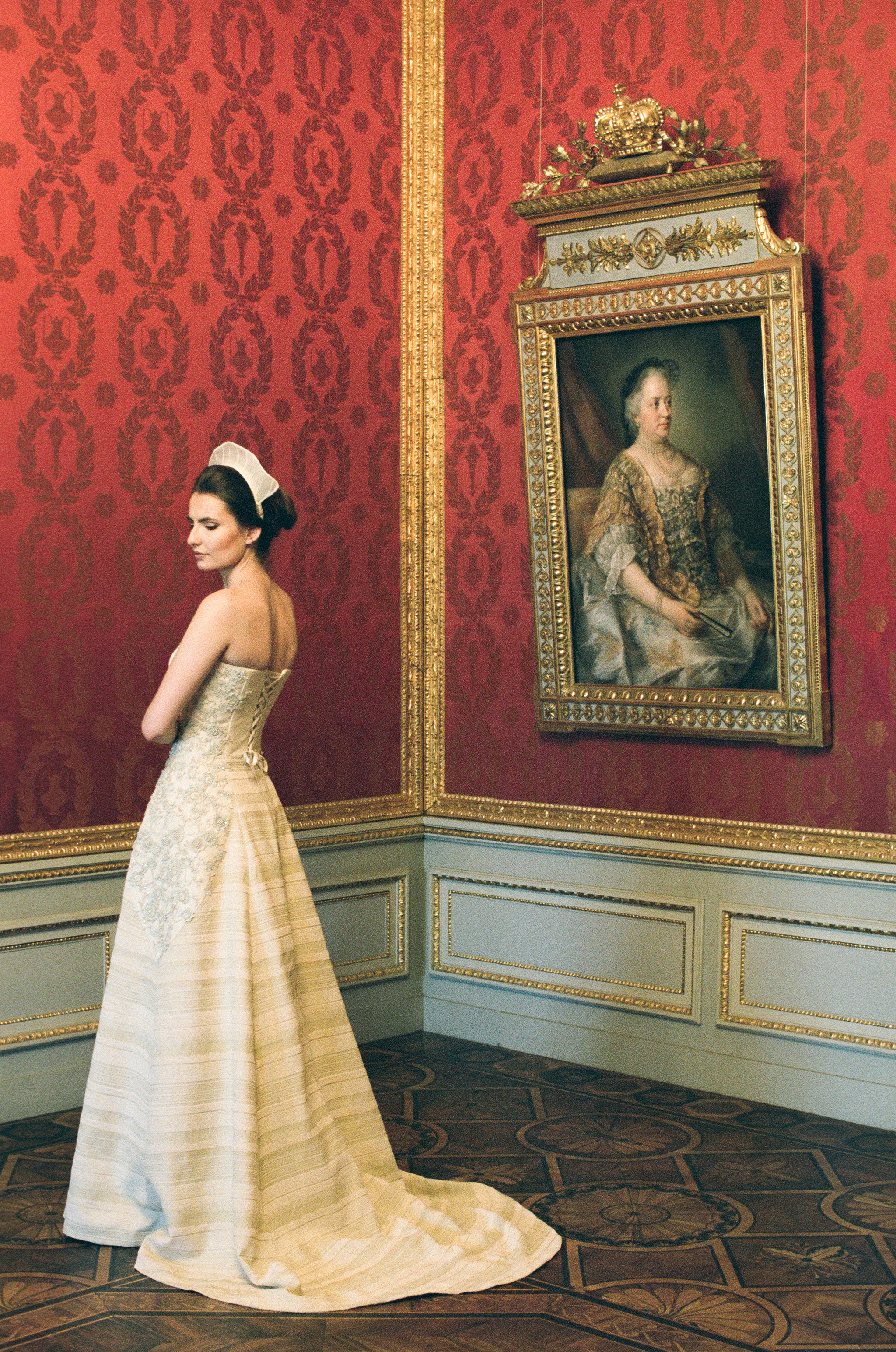 In Kooperation mit der ALBERTINA gestaltete Patricia Vincent ein Hochzeitsensemble, eine von klassischer Eleganz, Raffinesse und Anmut getragene Interpretation des Klassizismus Maria Christinas Epoche. Ein Ensemble mit klarer und fast schon majestätischer Aura, das gemeinsam mit der gefragten Wiener Fotografin Lisa Leutner in den Prunkräumen des Museums inszeniert und fotografiert wurde.