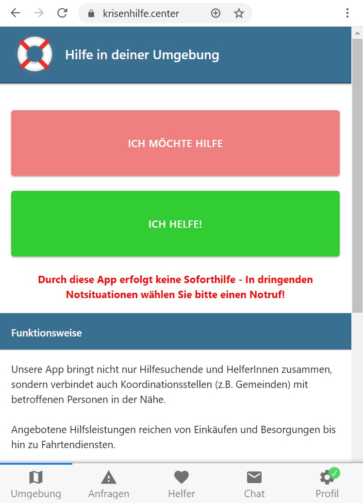 Neue App für Nachbarschaftshilfe - https://krisenhilfe.center