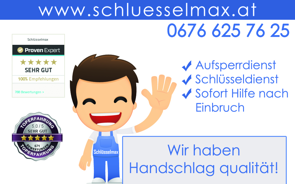 Es kann wirklich jedem passieren: Wenn die Tür zufällt ist schnelle und zuverlässige Hilfe von einem Schlüsseldienst in Wien gefragt. Daher bietet Schlüsselmax den Wienern beste Lösungen in allen Schlüsselfragen. Dabei legt das Wiener Unternehmen Wert auf völlige Transparenz bei der Preisgestaltung, sowie beste Service-Qualität. Dazu gehören günstige Fixpreise und garantiert kurze Wartezeiten. Schlüsselmax in kürzester Zeit in allen 23 Wiener Bezirken der Stadt zur Stelle.
