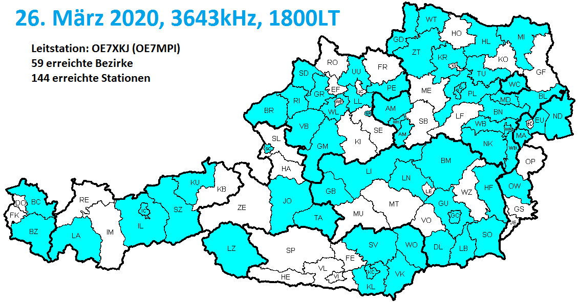 Seit Sonntag, 15. März 2020 sind Österreichs Funkamateurinnen und Funkamateure auf Kurzwelle, VHF- und UHF-Frequenzbändern vermehrt zu hören. Es haben sich Funkrunden etabliert, an denen täglich rund 250 Funkamateure aus beinahe allen Bezirken Österreichs teilnehmen.