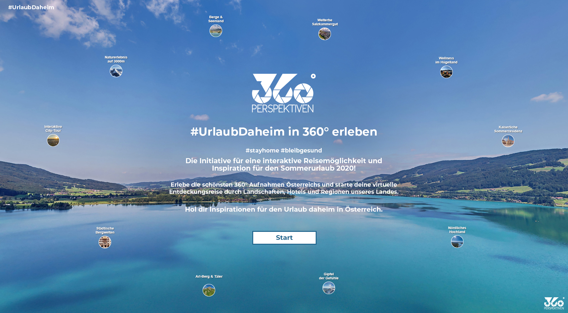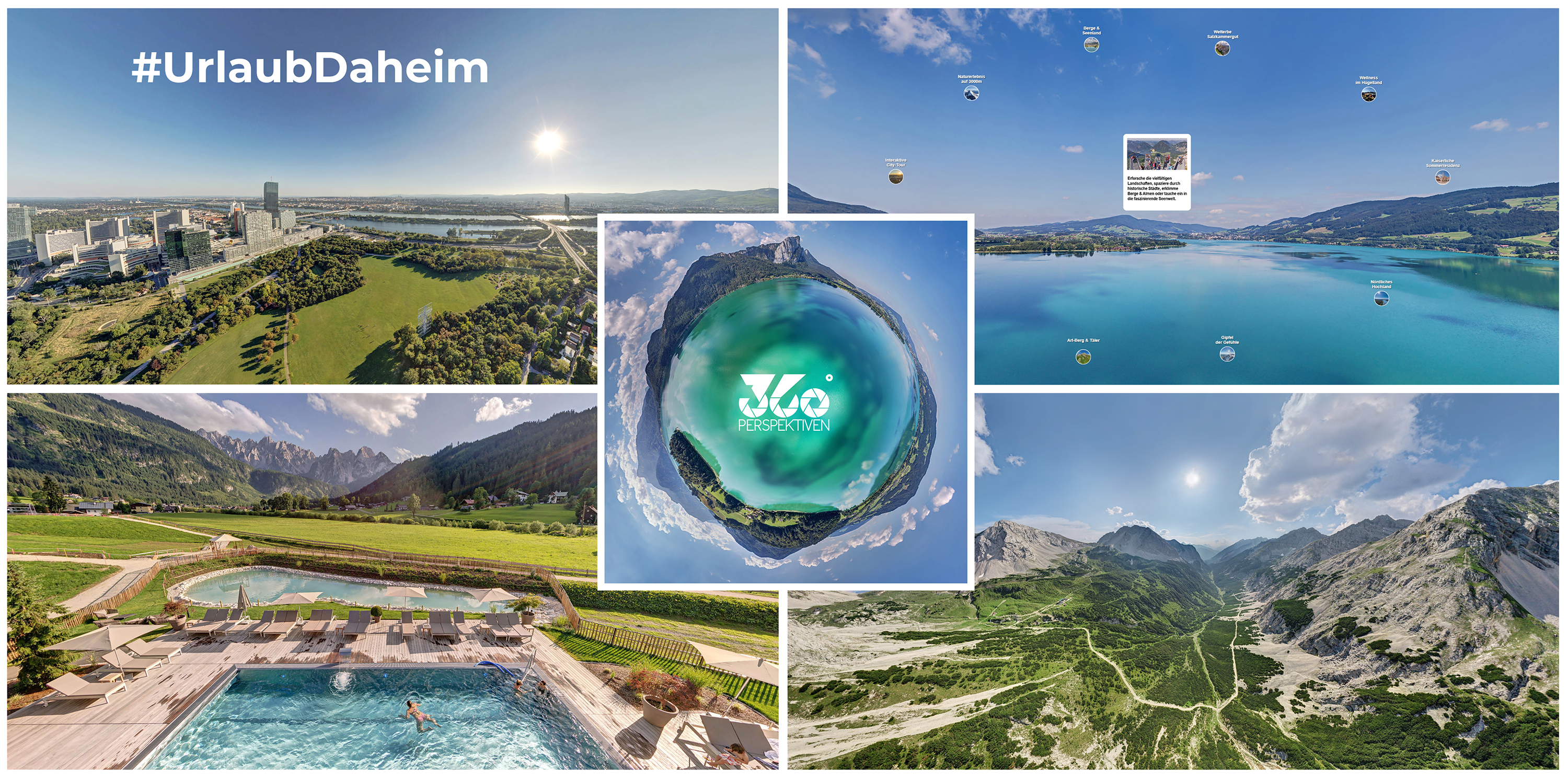 Unter www.360perspektiven/UrlaubDaheim sind rund zwanzig ausgewählte 360°-Destinations- und Regionstouren zusammengefasst und ermöglichen damit über 500 einzigartige Plätze, Standorte und Locations mittels 360°-Panoramen in Österreich im Überblick zu entdecken. Damit präsentiert die 360 Perspektiven GmbH eine der umfangreichsten und größten interaktiven 360°-Panoramen-Tour Österreichs.
