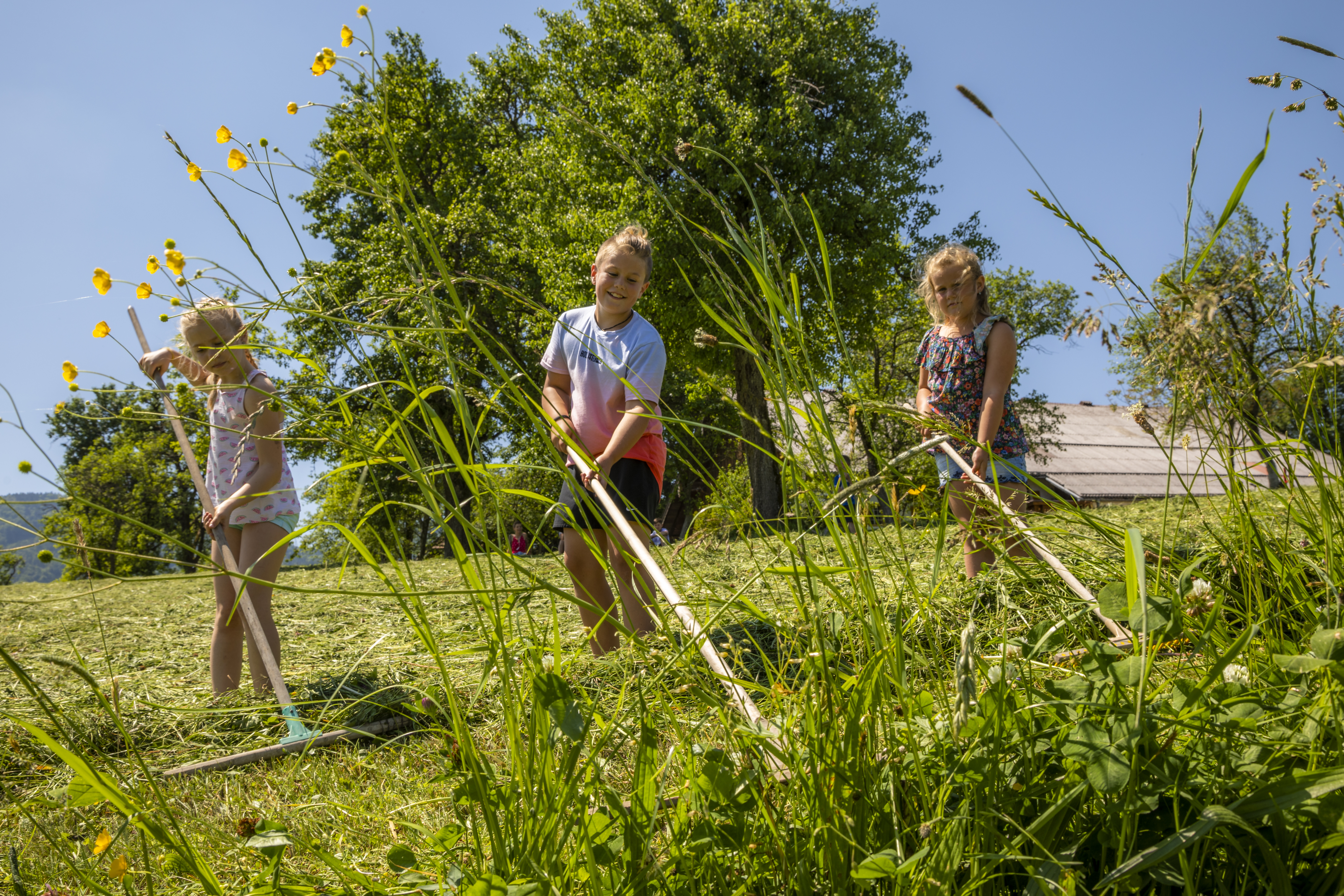 Ganz im Gegenteil: Die gemütlichen Höfe bzw. Almhütten sind klein, fein und oftmals in Alleinlage. Die überschaubare Anzahl an Zimmern und Ferienwohnungen pro Bauernhof trifft auf scheinbar unendlich weite Felder und Wiesen direkt vor der Haustür. Rad- und Wanderwege sind meist in unmittelbarer Nähe. Also ganz viel natürlicher Spielraum für Groß und Klein, der wahre Erlebnisse bereithält: etwa Traktorfahren mit dem Bauern, ein Besuch im Stall oder im Kräutergarten. Hier muss nichts inszeniert werden, echte Bauernhoferlebnisse passieren so oder so. Mitanpacken ist erlaubt, das ist Teil der herzlichen Gastfreundschaft. Diese zeigt sich auch am Frühstückstisch: Regionale Leckerbissen – meist aus eigener Landwirtschaft bzw. selbstgemacht – wie etwa Holzofenbrot, Erdbeermarmelade, Butter oder Joghurt, werden liebevoll kredenzt. Da weiß man, was auf den Teller kommt.