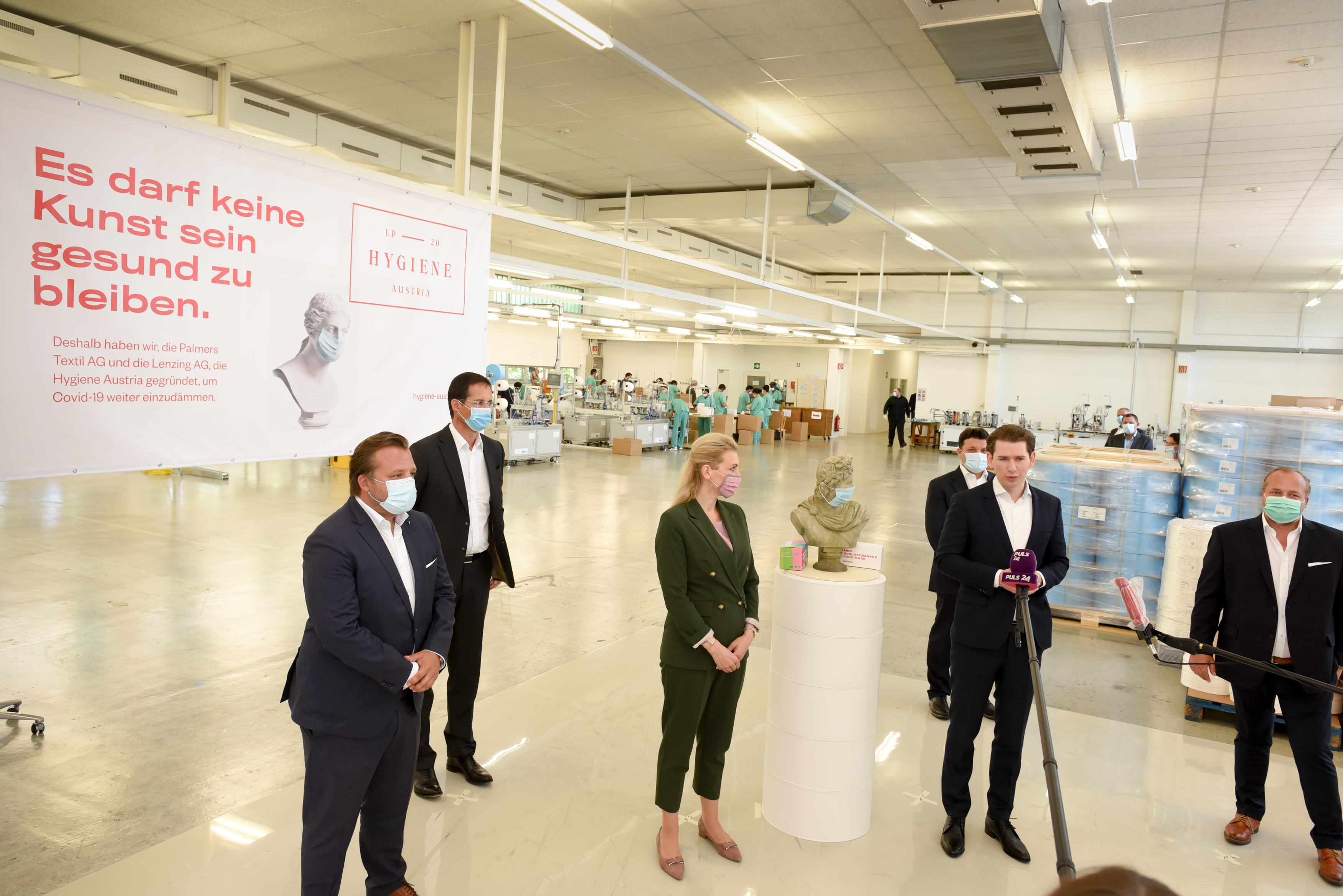 Bundeskanzler Kurz und Arbeitsministerin Aschbacher besuchten österreichische Masken-Produktion der Hygiene Austria LP GmbH