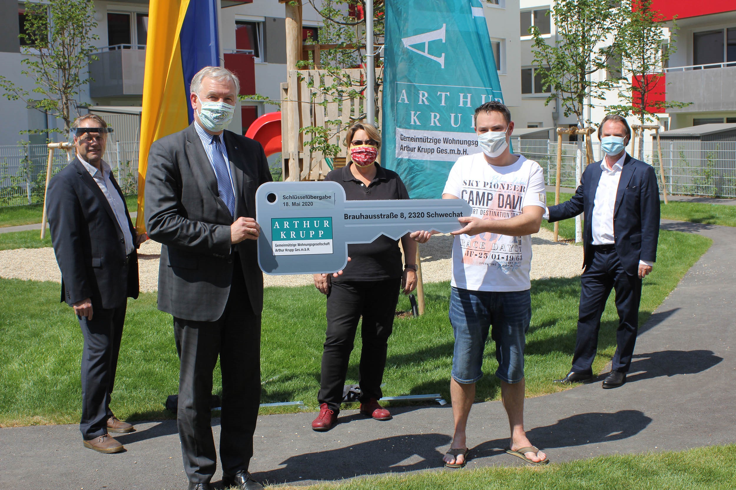 In Vertretung von Landeshauptfrau Johanna Mikl-Leitner hat Landesrat Martin Eichtinger, am 18. Mai 2020, im Beisein von Bürgermeisterin Karin Baier, aufgrund der COVID-19 Maßnahmen in einem symbolischen Akt, die von der Gewog „Arthur Krupp“ errichtete und durch das Land Niederösterreich geförderte Wohnhausanlage an die neuen Mieterinnen und Mieter übergeben.