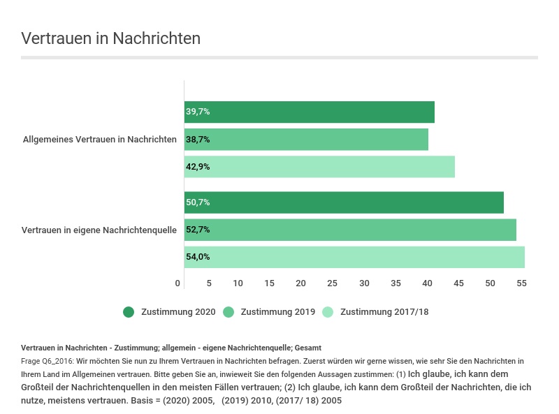 Ergebnisse des Reuters Digital News Report 2020 für Österreich