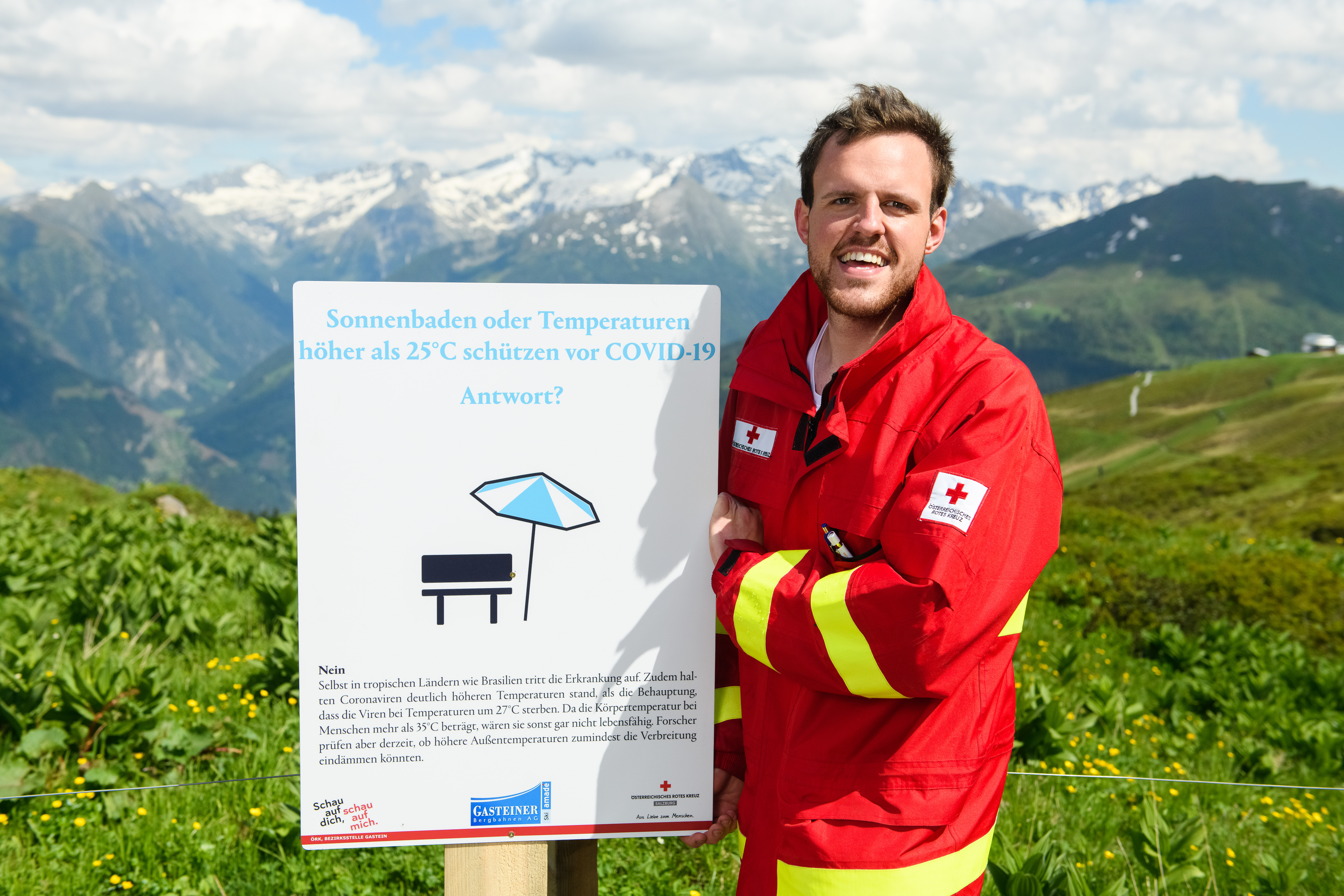 An drei Wanderschaukeltagen (28.6., 11.7. & 15.8.) führt das Rote Kreuz der Bezirksstelle Gastein in Zusammenarbeit mit den Gasteiner Bergbahnen das bewährte Kursformat „Ein Tal lernt retten“ fort. Aufgrund der derzeitigen Bedeutung greift die dritte Ausgabe der Outdoor-Initiative die Kampagne „Schau auf dich, schau auf mich“ auf. An drei Stationen geben die erfahrenen Sanitäter in Kleingruppen ihr Wissen zum Thema Schutzmaßnahmen gegen das Coronavirus (Covid-19) weiter. Darüber hinaus informiert ein beschilderter Themenweg, der die Wanderer von der Schlossalm Richtung Kaserebenbahn führt, zu Corona-Mythen.