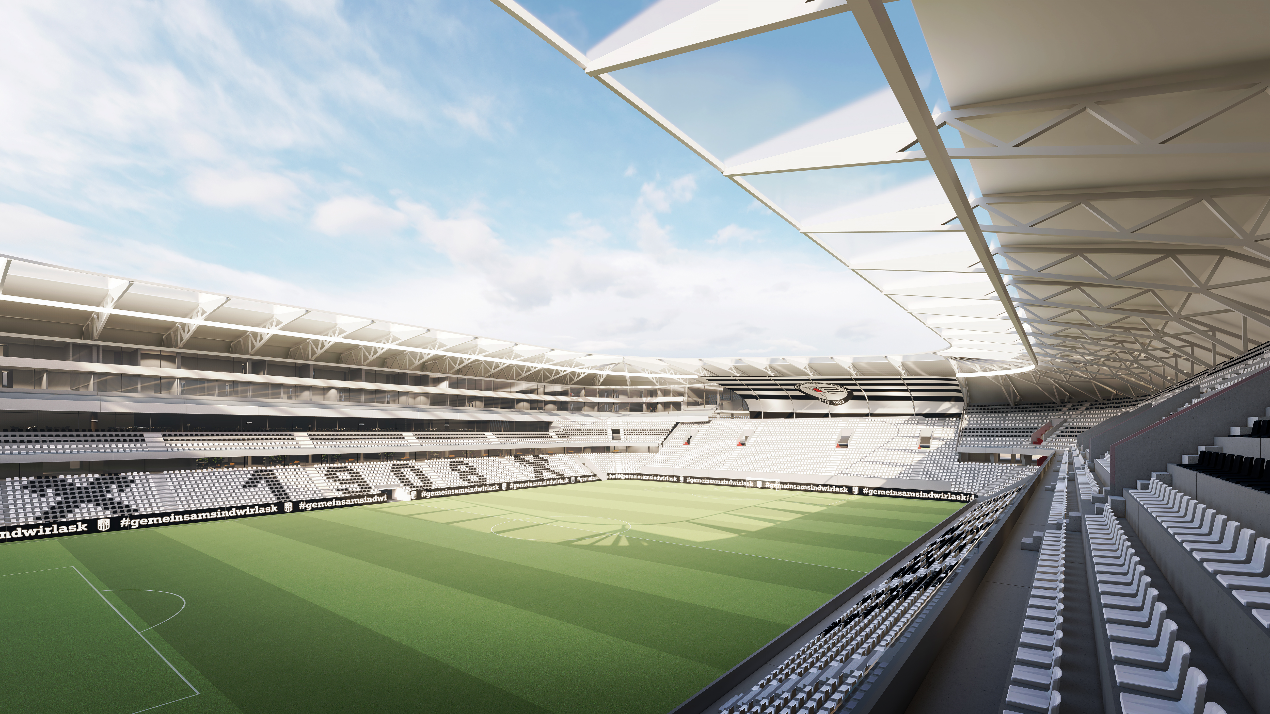Die neue LASK Arena auf der Linzer Gugl wurde heute erstmals präsentiert. Sie bietet Fans wie Fußballern ein besonderes Spielerlebnis – und als multifunktionaler öffentlicher Ort einen Mehrwert für die gesamte Bevölkerung. Eine „neue Landmark für Linz“ kündigt Architekt und Geschäftsführer der Raumkunst ZT GmbH Harald Fux an, die durch nachhaltige Konzeption und Kapazität weit über die Bundeslandgrenzen hinweg Maßstäbe im modernen Sportstättenbau setzt.