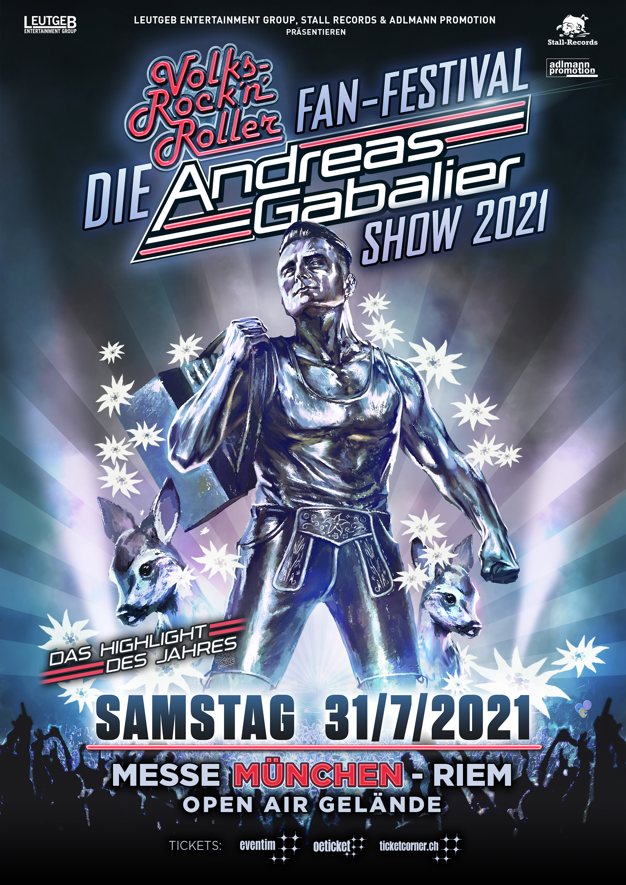 In genau 365 Tagen - gerechnet ab heute – findet nun am 31. Juli 2021 die einmalige und einzigartige Volks-Rock´n´Roller-Show auf dem Freigelände der Messe München statt. Es ist schlechthin die absolute Sensation in der deutschsprachigen Eventgeschichte, die alles bisher Dagewesene übertrifft.