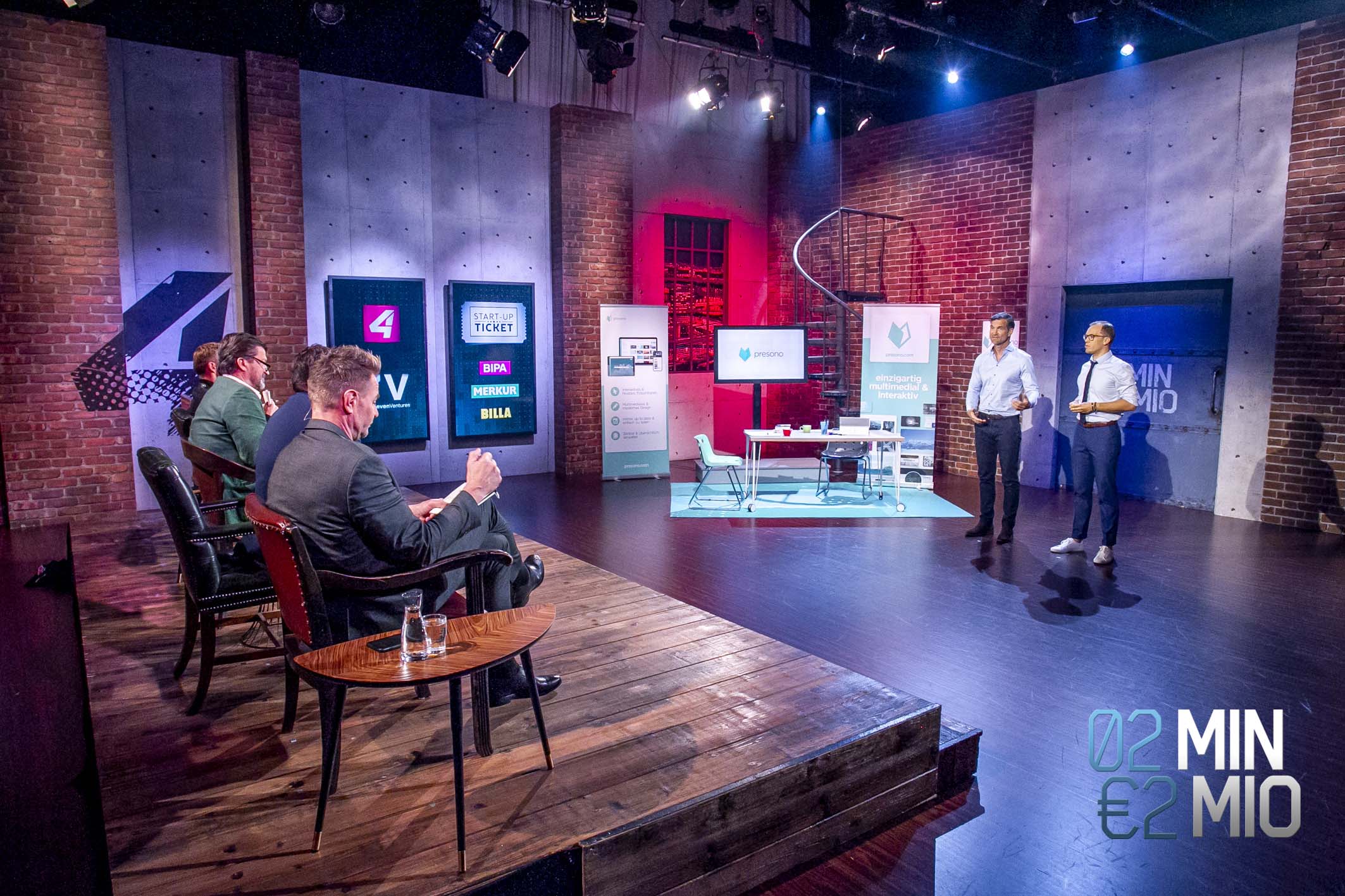In sieben Staffeln des PULS 4 Erfolgsformats „2 Minuten 2 Millionen“ präsentierten sich bereits hunderte Start-ups vor den hochkarätigen Investoren. presono gelang es in der Sendung mit einer Million Euro Mediavolumen ein besonders hohes Investment für sich zu gewinnen. Nach einer intensiven Verhandlungsphase mit Investor Daniel Zech von SevenVentures – dem Beteiligungsarm der ProSiebenSat.1 PULS 4 Gruppe – konnte das Linzer Start-up den Vertrag final unterzeichnen. Das Investmentvolumen aus der TV-Sendung konnte noch weiter ausgebaut werden: „presono erzielte damit einen großen Erfolg und ist unter hunderten Teilnehmern aus sieben Staffeln eines der wenigen Start-ups, die es geschafft haben, ein siebenstelliges Investment abzuschließen.