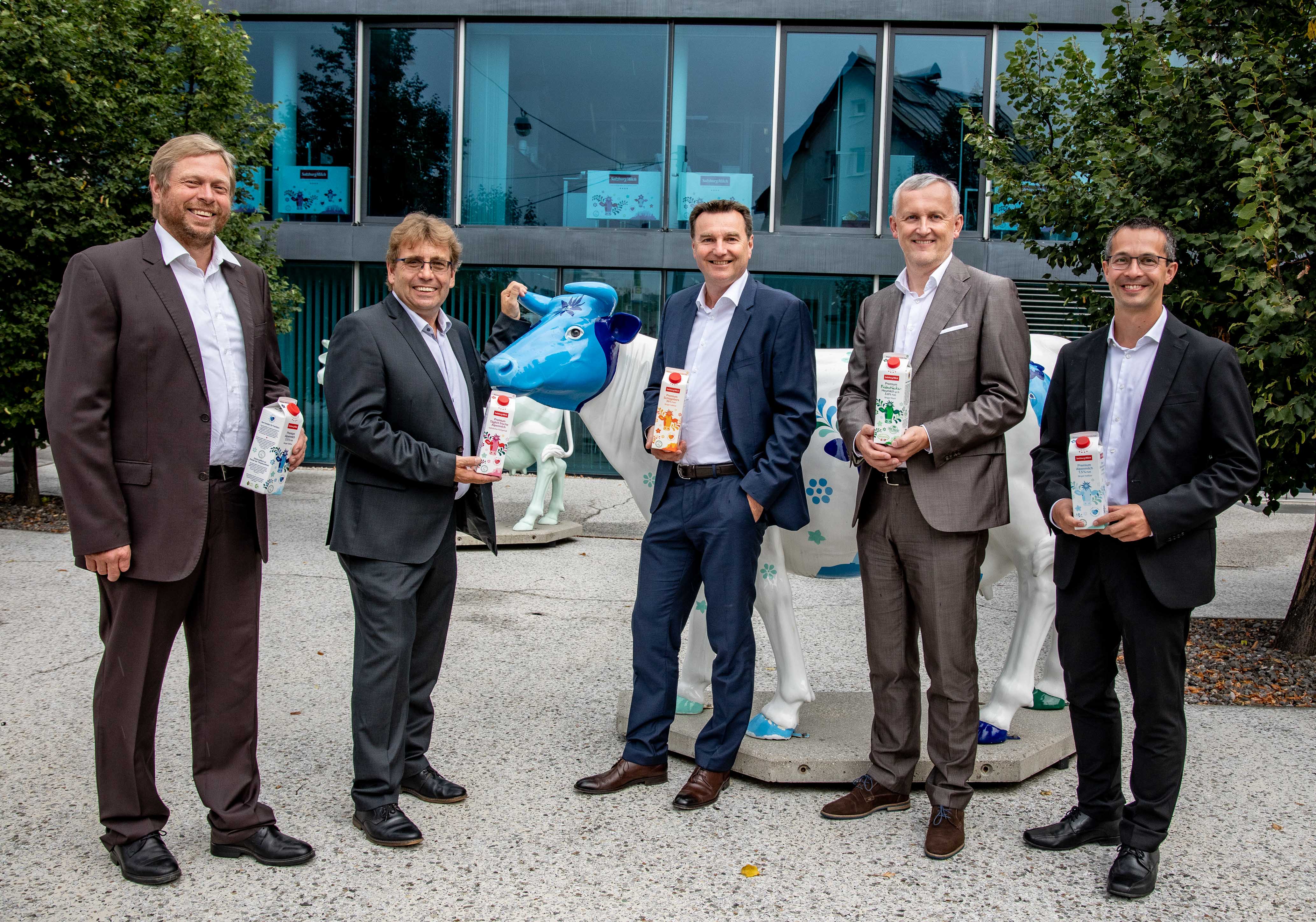 Um das Unternehmen SalzburgMilch weiterhin in eine erfolgreiche Zukunft führen zu können, haben die drei Genossenschaften kürzlich in Generalversammlungen beschlossen, die Eigentümerstrukturen zu modernisieren. Dazu werden rückwirkend zum 1.1.2020 die Genossenschaften zu einer fusioniert, die ab sofort unter dem Namen Salzburger Alpenmilch Genossenschaft eGen agieren wird. Obmann der neuen Genossenschaft ist Robert Leitner, Milchbauer aus Tarsdorf und bisheriger Obmann der Milchhof Salzburg eGen sowie langjähriger Aufsichtsratsvorsitzender der SalzburgMilch. Als seine Stellvertreter wurden Franz Bernhofer (Milchbauer aus Scheffau), Martin Fersterer (Milchbauer aus Lamprechtshausen) und Peter Lassacher (Milchbauer aus Mariapfarr) bestellt.