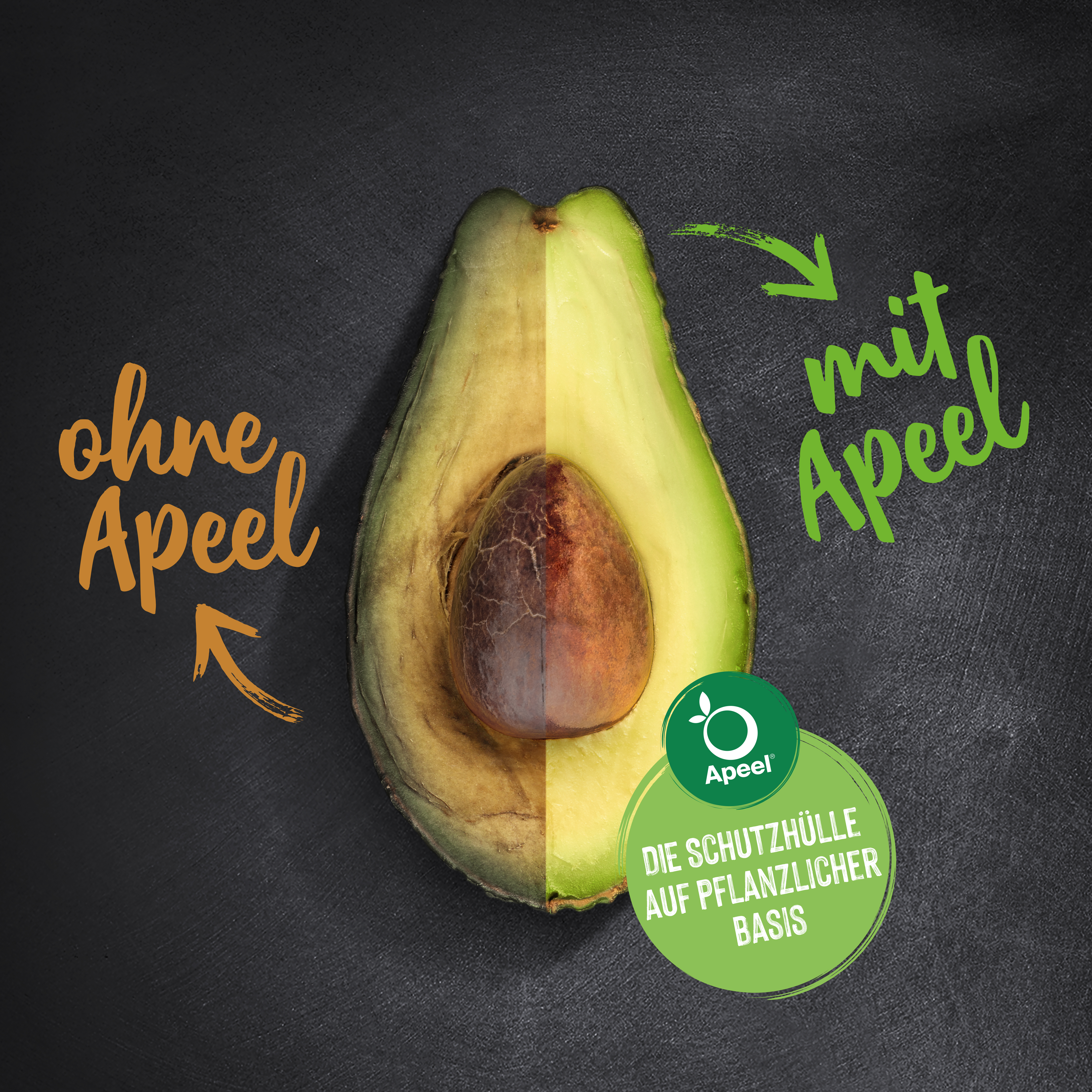 - Mit Apeel behandelte Avocados erwiesen sich dank der Verfahrenstechnik (Avocados verlieren weniger Wasser und es dringt weniger Sauerstoff ein - beides sorgt im natürlichen Reifeprozess für eine längere Frische), Reifezeit und längerer Gesamthaltbarkeit als qualitativ überlegen.