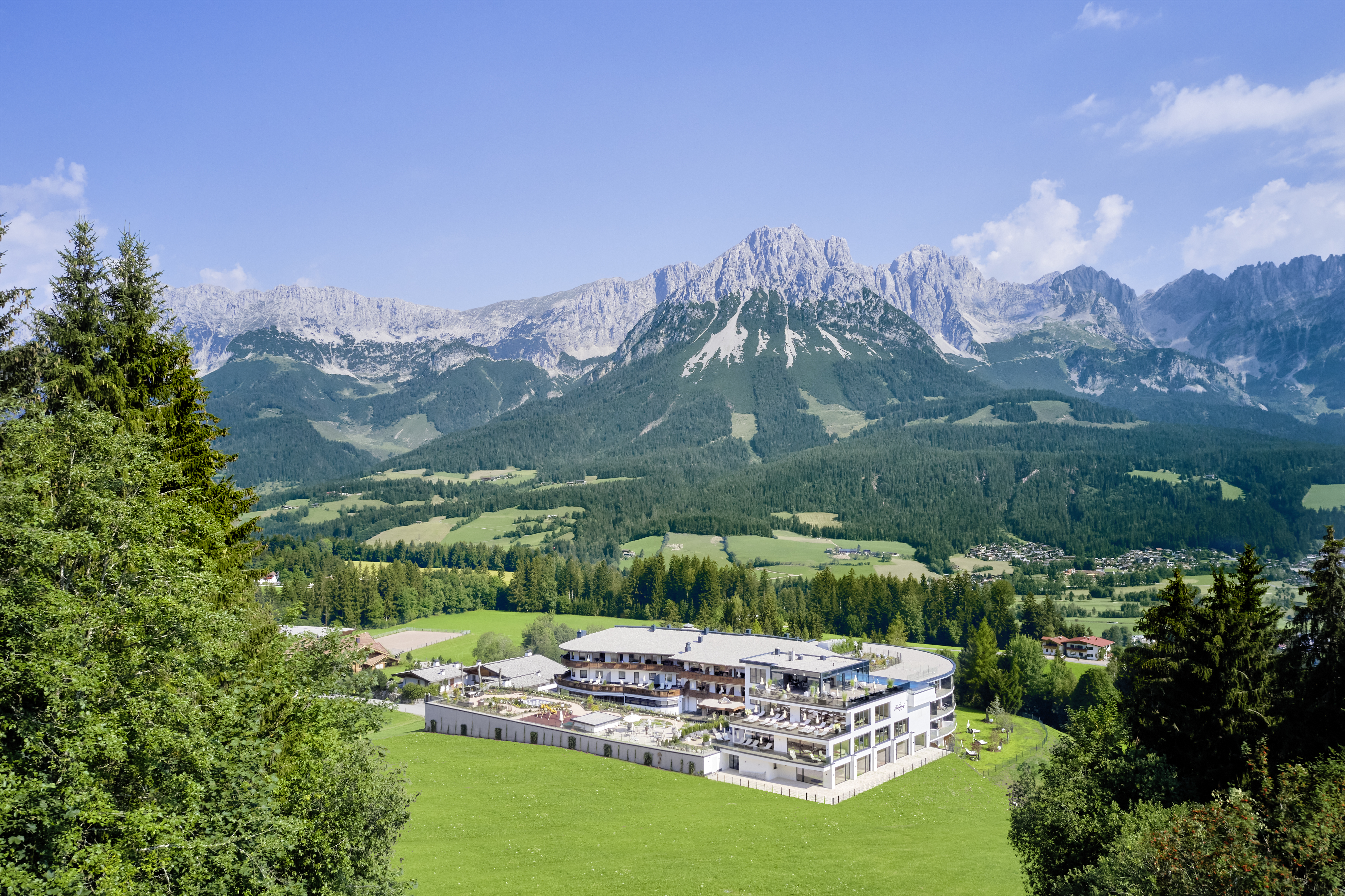 Seit vielen Jahren begeistert der Kaiserhof Ellmau als eines der hochwertigsten und eindrucksvollsten Urlaubsdomizile Österreichs. Gastgeberfamilie Lampert ist seit jeher darauf bedacht, die enorm hohen Standards des 5 Sterne S-Hauses immer wieder aufs Neue zu übertreffen. Der aktuelle Neubau versteht sich als Generationenprojekt, das neue Akzente setzt, frische Ideen realisiert und vor allem viel Raum für luxuriöses Sein in der herrlichen Bergwelt des Wilden Kaisers schafft. Absolutes Highlight ist dabei der 18 Meter lange Unlimited Mountain Rooftop Pool – wo im wohlig warmen Wasser die Kaiserkulisse zum Greifen nahe wird. Der Pool krönt den neuen Panorama SPA-Turm, der auf vier Ebenen eine großartige und -flächige Saunen- und Wellnesslandschaft bietet, inklusive großzügigster Panorama-Ruheterrassen. Einen Kernbereich des Umbaus stellt auch die Erweiterung der Zimmer und Suiten auf großzügige 60 bis 70 Quadratmeter dar. „Mit großflächigen Panoramafenstern fängt der Um- und Neubau der übergroßen Zimmer und Suiten das einzigartige Kaiserpanorama eindrucksvoll ein. Für unvergleichliches Wohlfühlen sorgen edle Holzböden, großzügige und modernst eingerichtete Badezimmer sowie zahlreiche liebevolle Feinheiten