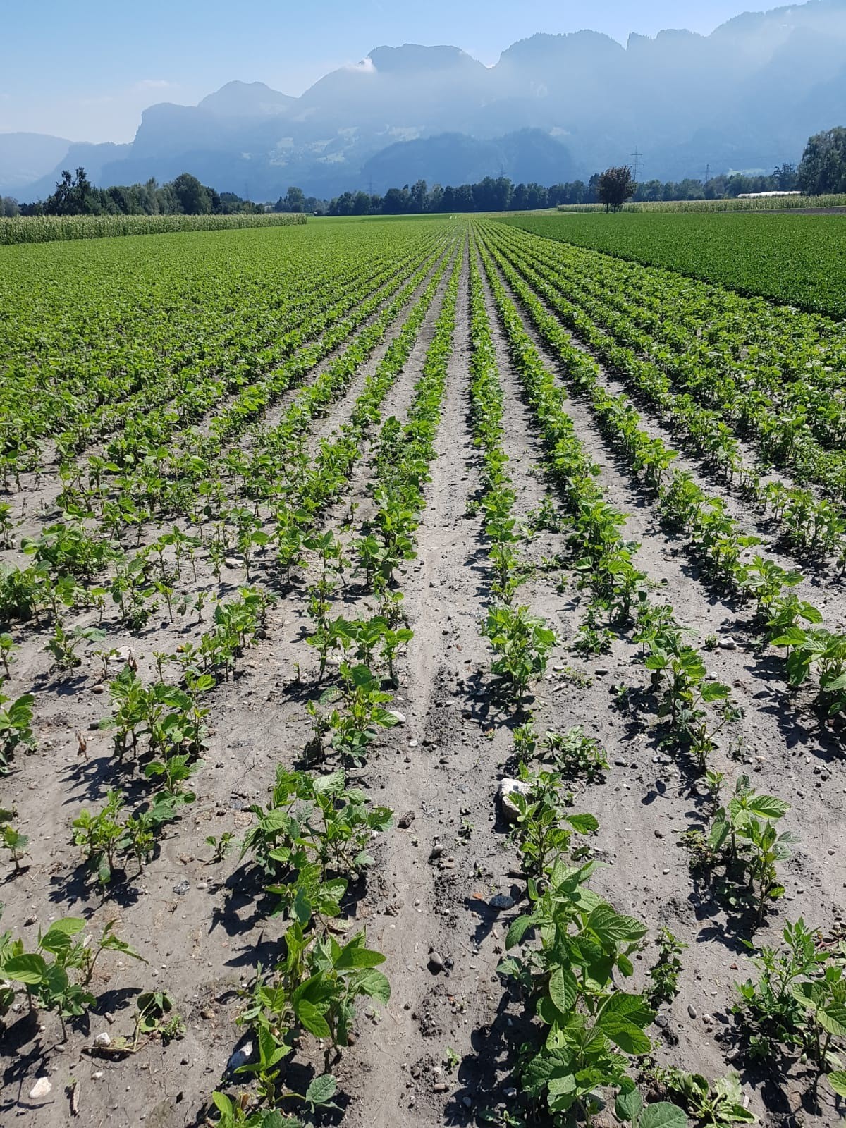 Gemüsebaubetriebe in Deutschland, Österreich und der Schweiz haben diese positiven Erfahrungen bereits machen dürfen. Die Fotoleiste zeigt ein Beispiel von durch Hagelschlag zunächst fast komplett zerstörten Buschbohnen im Schweizer Rheintal Ende Juli 2020 - und ihre Rettung durch das Konzept der schwäbischen Tüftler binnen zweieinhalb Wochen.
