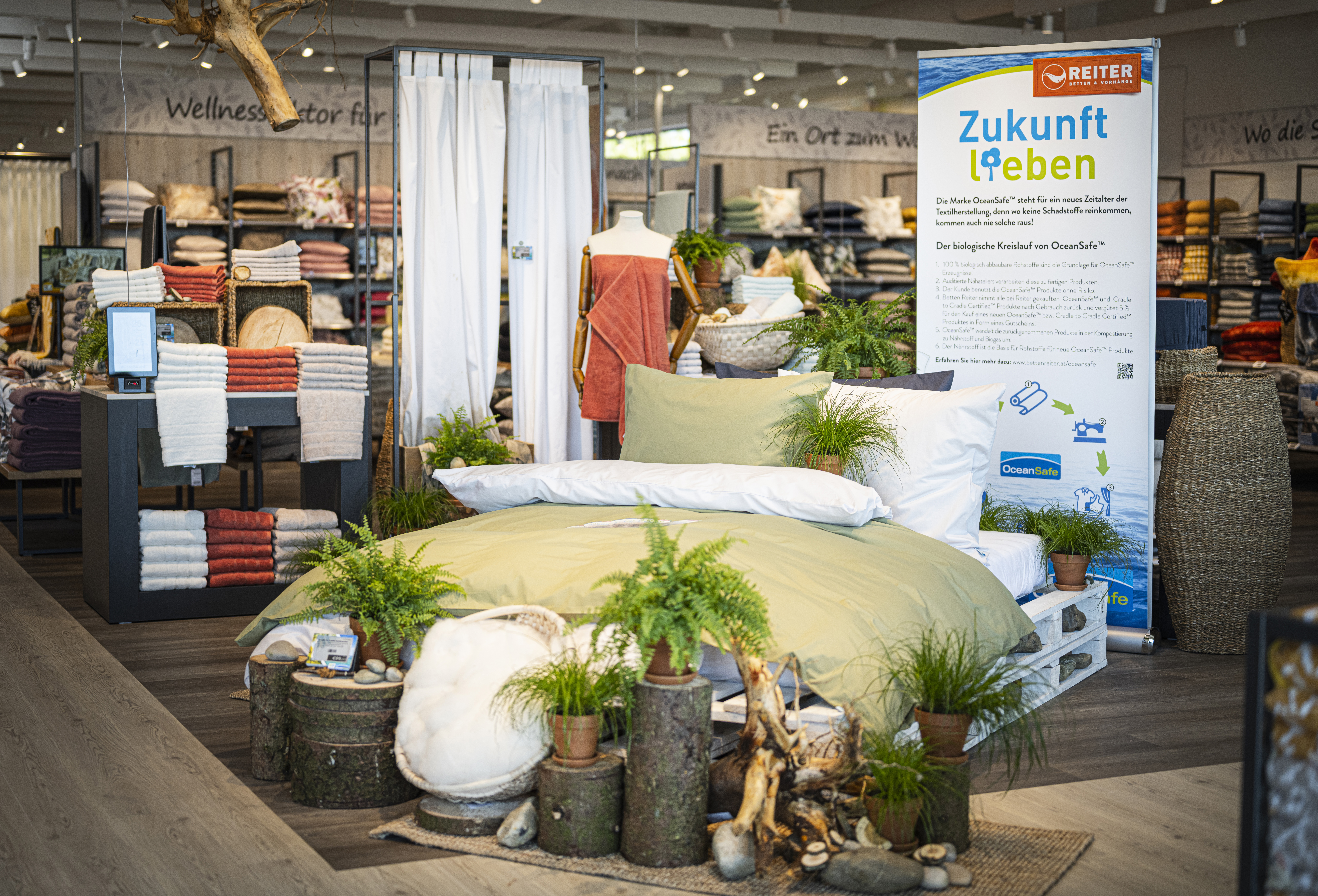 BETTEN REITER ist der österreichische Heimtextilien-Spezialist. Das Familienunternehmen ist seit 1953 die erste Adresse, wenn es um trendiges Wohnen und gesundes Schlafen geht. Bestens ausgebildete Mitarbeiter sind in 18 Filialen täglich im Einsatz für die Kunden. Der Erfolg von BETTEN REITER gründet sich auf drei Säulen, die das Unternehmen von der ersten Stunde an geprägt haben: Kundennähe mit persönlicher Beratung, Top-Qualität zu besten Preisen und eine Firmenphilosophie, die den Menschen in den Mittelpunkt stellt. Aus Liebe zur Region und um die heimische Wertschöpfung zu stärken, gibt BETTEN REITER österreichischen Produkten und Lieferanten den Vorzug. Nachhaltigkeit und Fairtrade sind dabei Teil der DNA von BETTEN REITER.