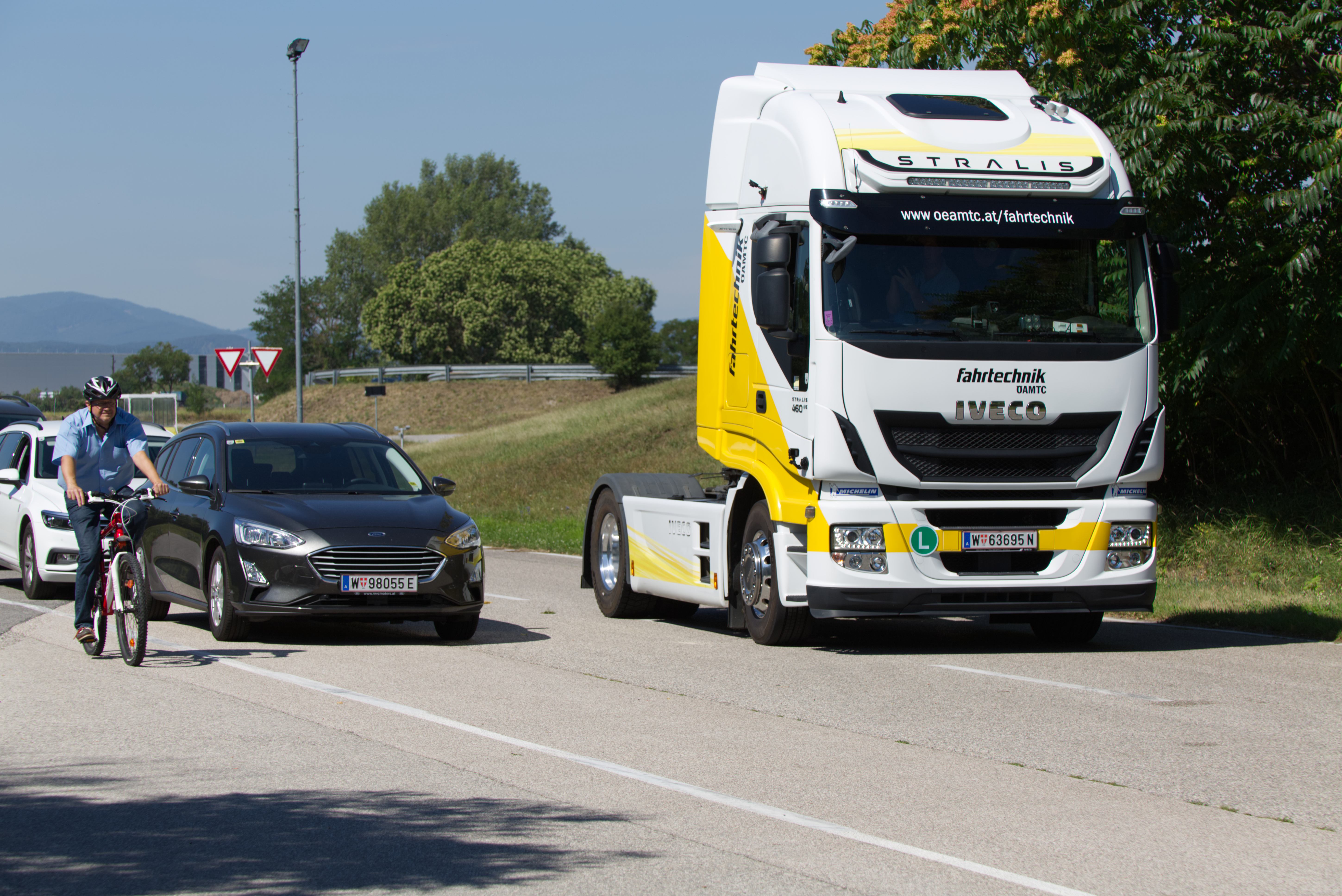 „Der getestete Abbiegeassistent hat in allen Situationen einwandfrei funktioniert: sowohl Radfahrer in der zweiten Reihe als auch Fußgänger an Kreuzungen wurden vom System als solche erkannt und haben sowohl eine akustische als auch optische Warnung an den LKW-Fahrer ausgelöst, als dieser nach rechts abbiegen wollte,“ zeigt sich Hermann Wirrer, ÖAMTC-Chefinstruktor für LKW und Busse zufrieden.