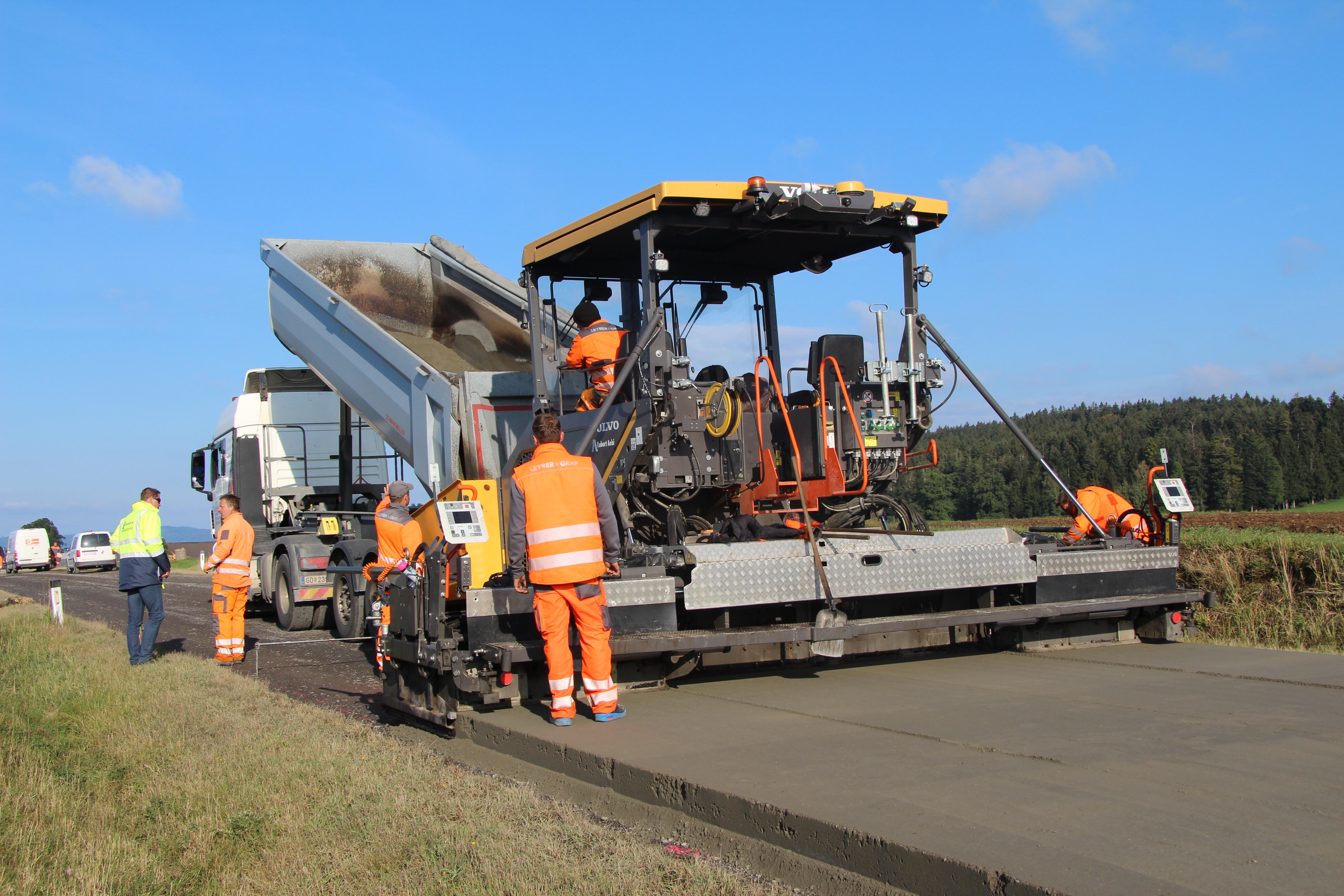 Sebastian Spaun, Geschäftsführer der Vereinigung der Österreichischen Zementindustrie, VÖZ, und Vorstandsvorsitzender von EcoRoads, betont die Wirtschaftlichkeit: „Der Einbau erfolgt rasch, die hohe Belastbarkeit und die lange Lebensdauer entlasten den Straßenerhalter über Jahre.“ Betonstrecken werden in der Regel mit speziellen Gleitschalungsfertigern eingebaut, für die die Verfügbarkeit bzw. entsprechende Platzverhältnisse im Landesstraßennetz meist nicht gegeben sind. Walzbeton ist die attraktive Alternative zum herkömmlichen Betondeckenbau. Dabei handelt es sich um eine spezielle erdfeuchte Betonrezeptur mit sehr geringem Wassergehalt, die mit einem Asphaltfertiger mit spezieller Verdichtungsbohle eingebaut wird und zusätzlich durch Walzen – ähnlich wie beim Asphalteinbau – verdichtet wird. Somit stehen einer langlebigen und günstigen Sanierungsmöglichkeit alle Wege offen.