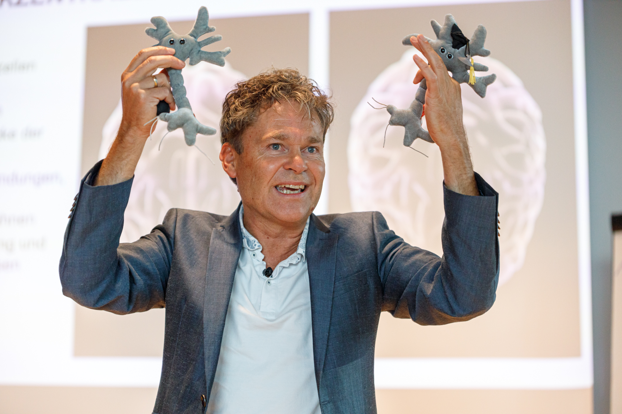 Daher standen Neurodidakitk, das menschliche Gehirn uns seine Fähigkeiten, zur Premiere der KnowledgeLounge im Mittelpunkt. Im Rahmen seines lebendigen Vortrags erzählte dabei Dr. Hannes Horngacher wie gehirngerechtes Lernen und Lehren funktionieren und welche Cocktails in Form von Dopamin, Serotonin & Co notwendig sind, um erfolgreich Wissen aufzunehmen.