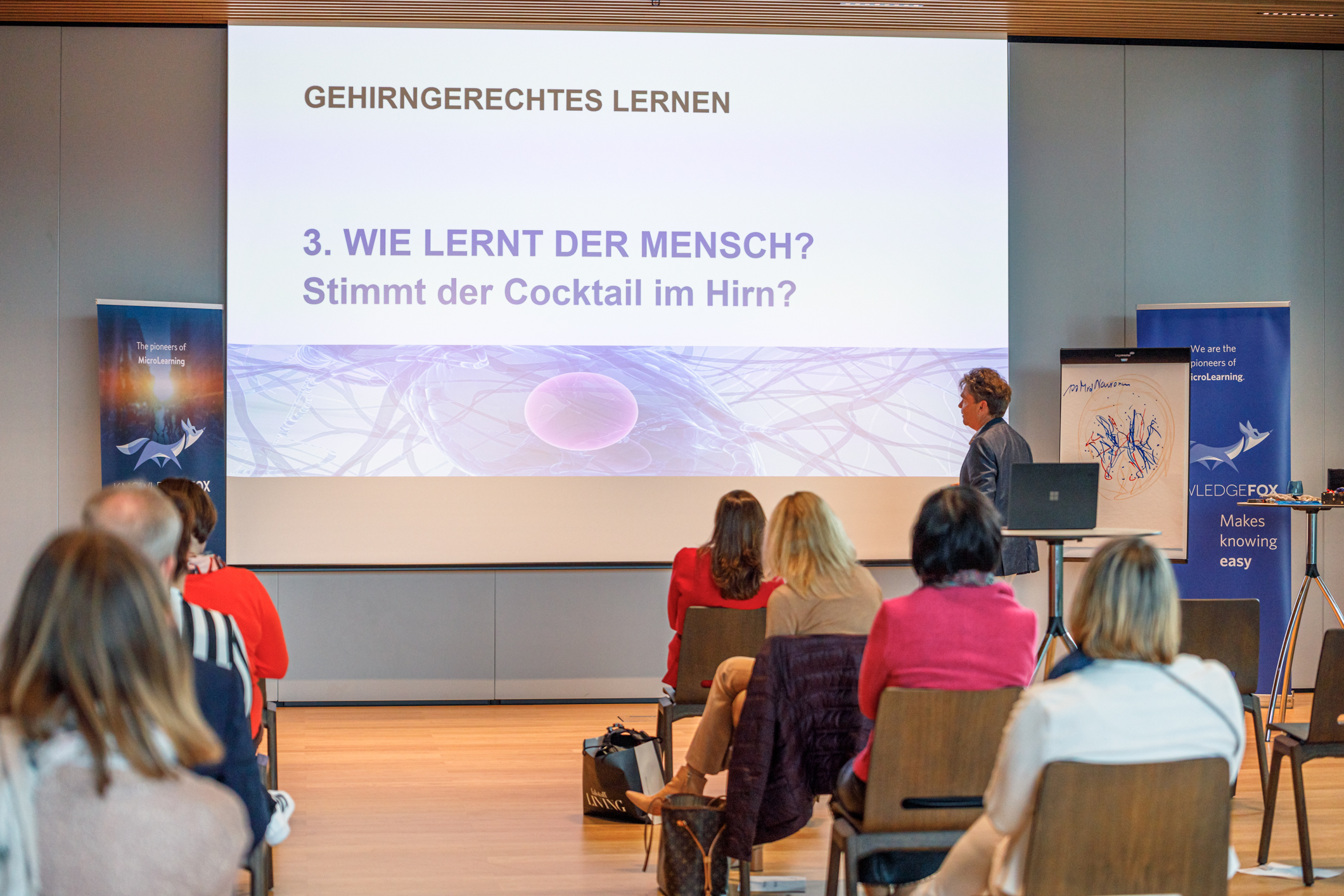 Zahlreiche HR-Verantwortliche und Lernbeauftragte folgten der Einladung des Digital Learning-Experten und MicroLearning-Erfinders KnowledgeFox und verbrachten einen inspirierenden Nachmittag mit „Brain Food“ zu gehirngerechtem Lernen und digitaler Didaktik.